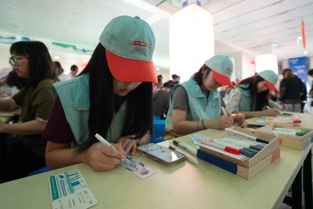 在种子车票创作区,“站小青”志愿者朱同学向旅客展示水墨未干的作品:高铁穿梭青山绿水,票面印着“杭州东站←→无废站2025年10月1日0点开”的意象旅程。“每张车票都是独一无二的艺术品,更是承载绿色未来的种子。”他解释道。这些可种植车票采用特定环保纸与花种手工制作,旅客带回家埋入土壤即可培育各类绿植,让“无废再生”理念在生活中生根。