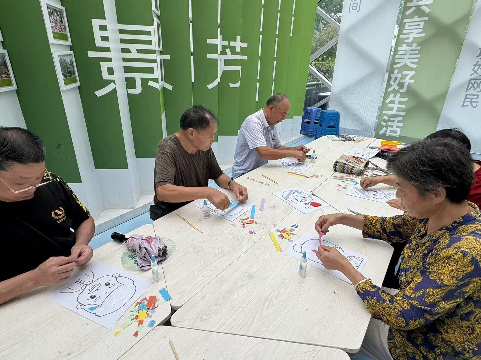 活动开始后,老人们充分发挥自己的想象力和创造力,有的专注地挑选着喜欢的彩纸颜色,有的小心翼翼地裁剪着图案,有的则互相交流着创作思路。工作人员和志愿者们在一旁不时地给予指导和帮助,耐心地协助他们。现场气氛热烈而和谐,大家沉浸在手工创作的快乐之中。