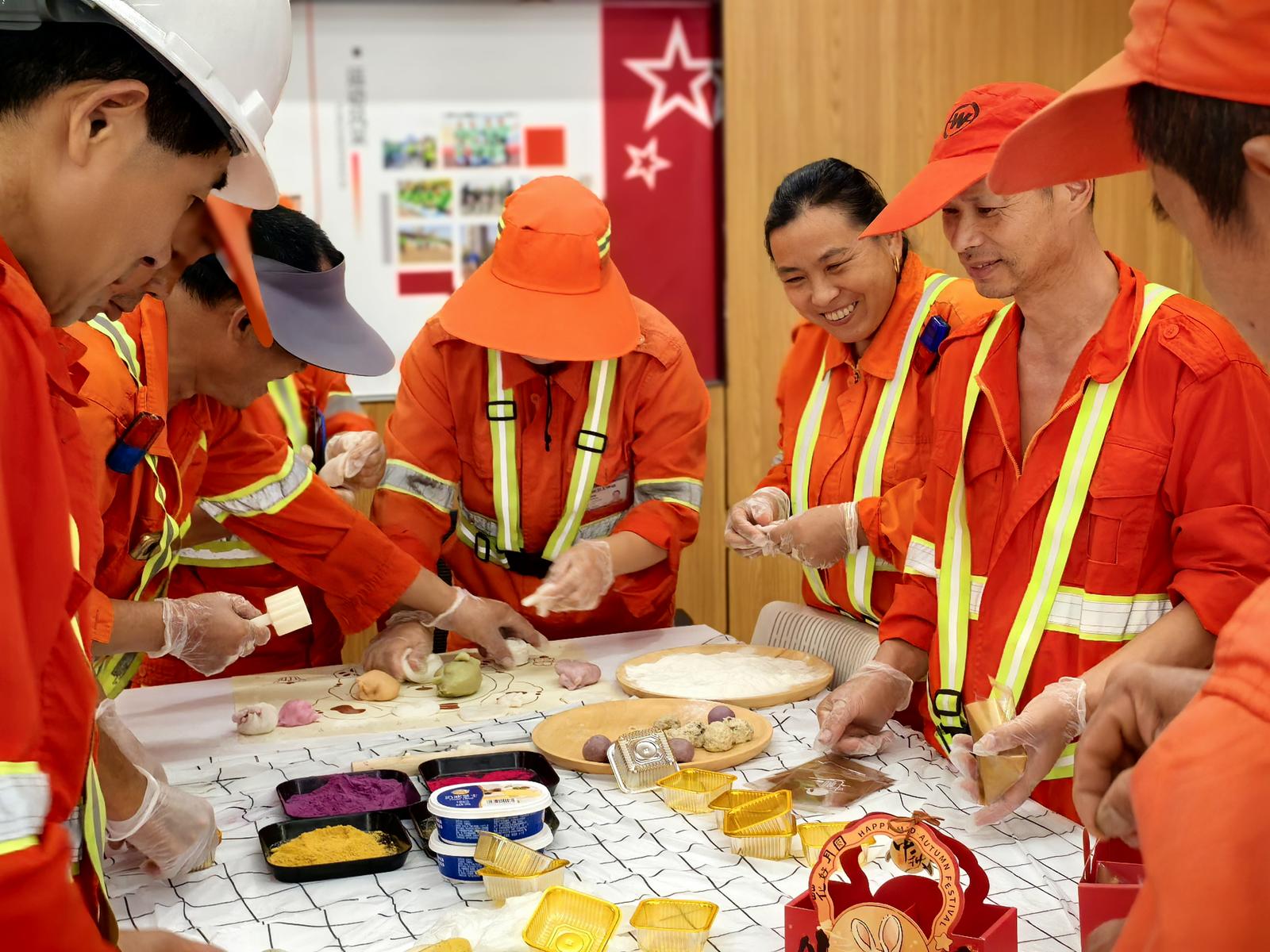 “揉面要轻一点,把冰皮揉得像婴儿的皮肤一样细腻,包馅的时候才能不漏……”西点烘焙师耐心地指导着现场的户外劳动者们。