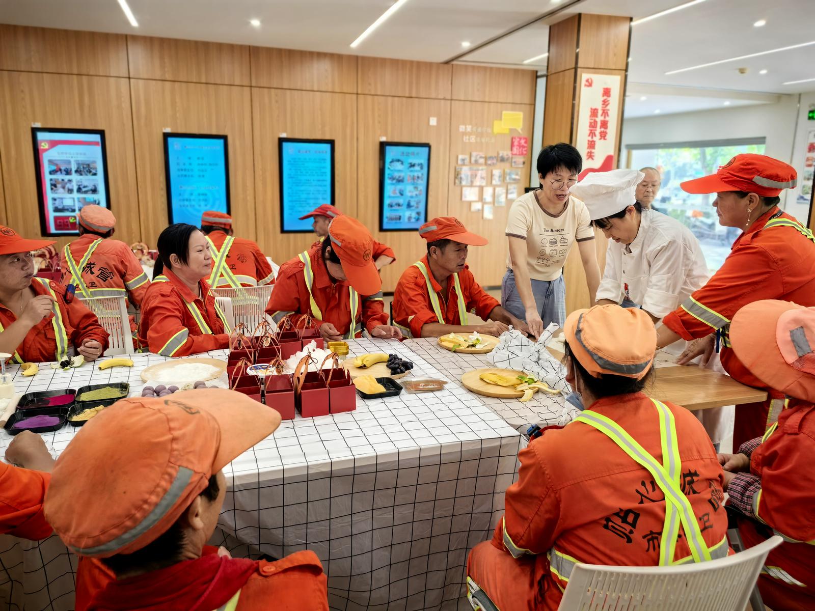 9月25日上午,蕙兰社区爱心驿家暖意融融,辖区30名环卫工人、快递小哥放下忙碌的劳动工具团聚于此,在专业烘焙师指导下亲手制作冰皮月饼,阵阵欢声笑语伴着月饼的香甜气息弥漫在空气中,提前感受中秋佳节的温暖。
