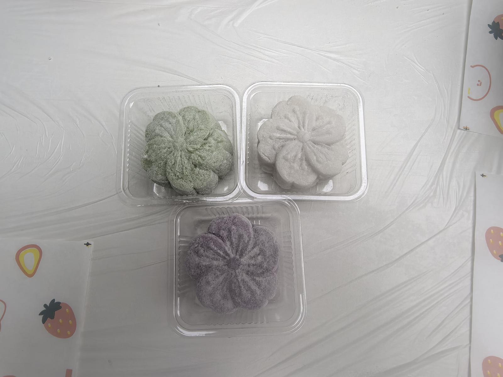 活动中,老师首先向居民们介绍了冰皮月饼的制作步骤和用到的工具。接着,志愿者将制作冰皮的粉,不同口味的馅料分发给现场的居民朋友们,大家便迫不及待地开始动手制作。倒水揉粉,按压皮子,包裹馅料,压模这些看似不难的几个步骤,大家却在制作初期犯了难。水加的太多,馅料应该取多少包裹,压模后的皮子粘在磨具上了……在老师和志愿者的指导和帮助下,居民们逐渐掌握了技巧,不一会儿,一个个像模像样的冰皮月饼就呈现在大家面前,大家纷纷展示制作成果,有的还在活动现场品尝起来,一派热闹又和谐的场景。