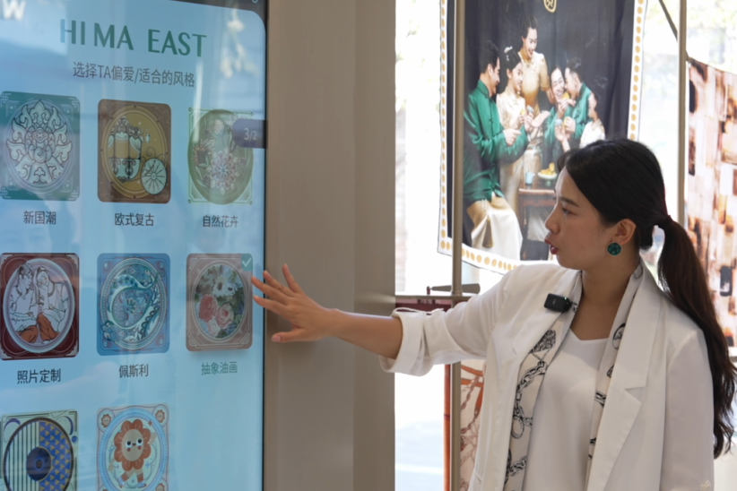 万事利AI穿搭定制,上传照片、选择主题,AI从70万种西湖烟雨、宋韵纹样中提取灵感,一键生成专属丝巾,把“杭州诗意”穿在身上。