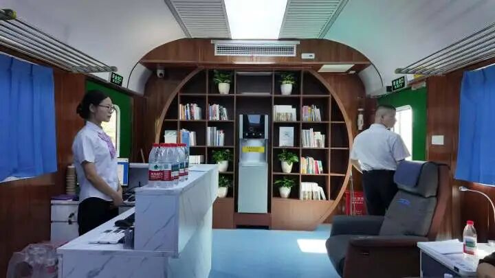 车厢内的空调,为旅客提供温度适宜的休息空间;现场摆放的饮水机提供免费开水,搭配一次性纸杯,方便旅客随时取用;服务台配备医疗急救箱,备有碘伏、创可贴、速效救心丸等常用药品和急救器材,为旅客健康保驾护航。
