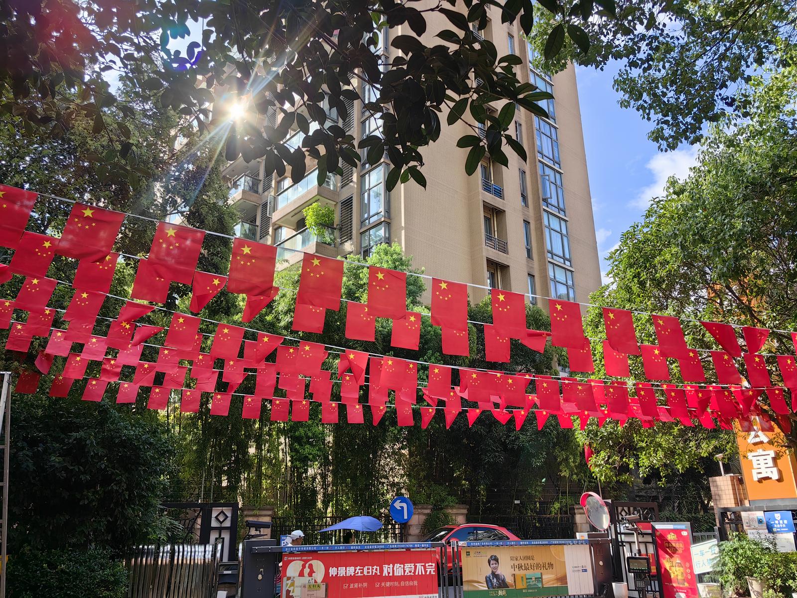 中秋、国庆双节将至,9月28日上午,庆春门社区处处洋溢着喜庆祥和的节日氛围。各小区主干道和显著位置早已悬挂起一面面鲜艳的五星红旗,迎风招展的旗帜连缀成一片炽热的红色海洋,不仅扮靓了社区家园,更点燃了居民心中浓浓的爱国情。