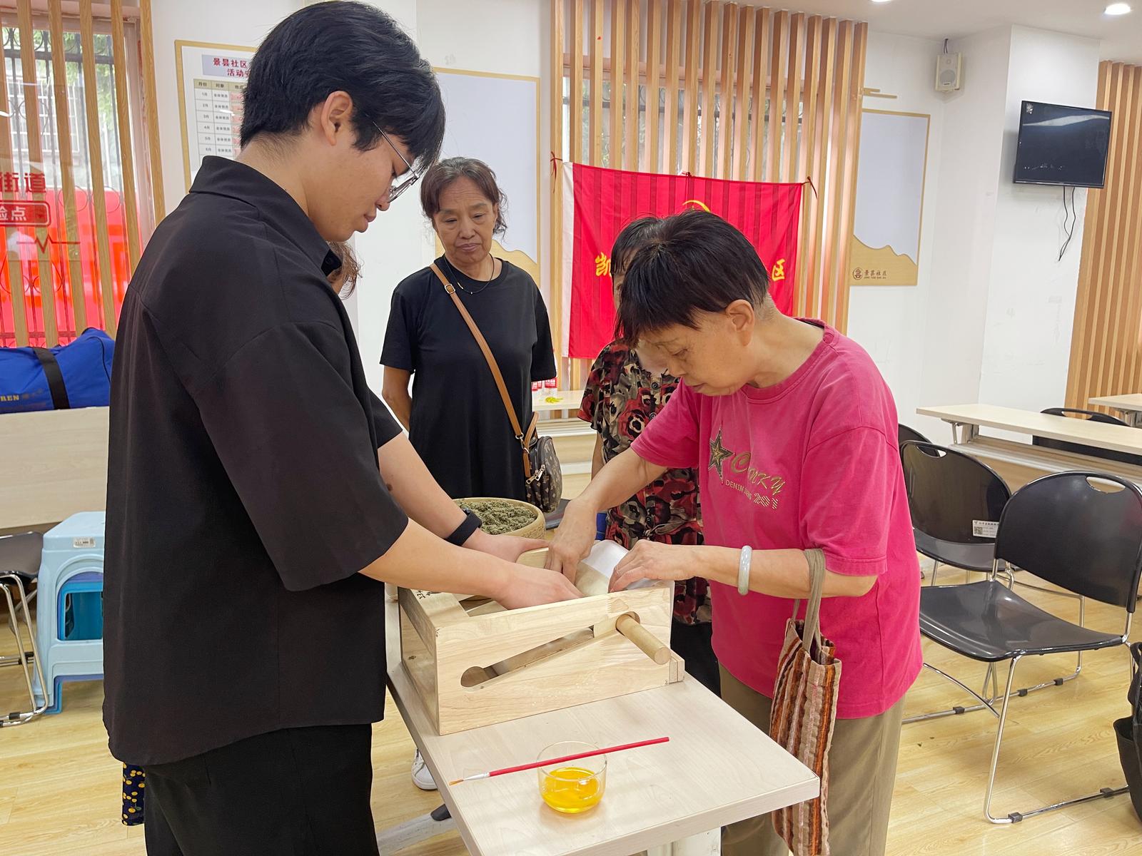 活动以社区健康小屋为服务载体,让传统艾灸技艺走近居民生活,活动还特别邀请古法艾灸非遗代表性传承人陈红娟,用通俗的语言讲解了艾灸的起源、功效及常用穴位,手把手向居民们传授了“四部灸”技法。艾条制作环节,居民们围在一起亲自动手,将艾绒平铺、卷紧、固定,体验非遗技艺的魅力;艾灸体验区,温热的艾气让不少居民舒缓了身体酸痛。