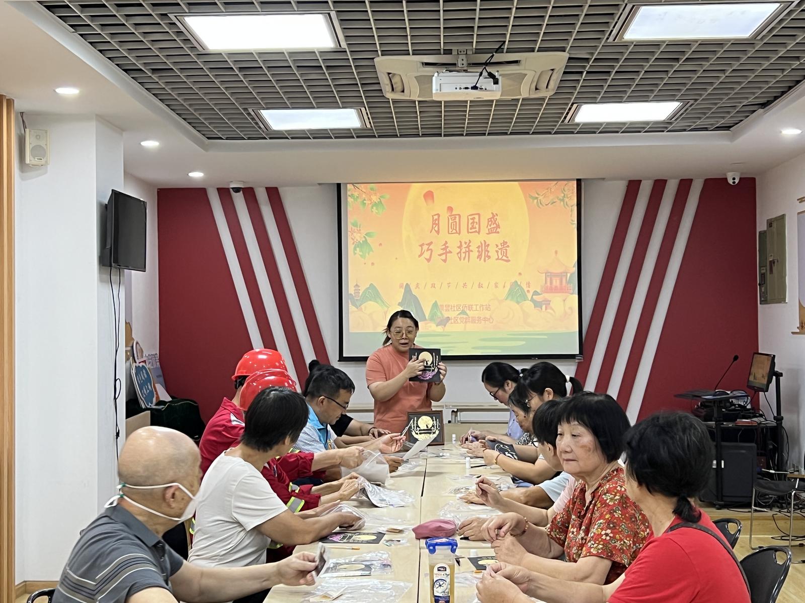 中秋佳节将至,9月29日上午,景昙社区开展“月圆国盛 巧手拼非遗”金箔画手工DIY活动,邀请社区统战人士、崇军志愿服务商家以及户外劳动者参与其中。