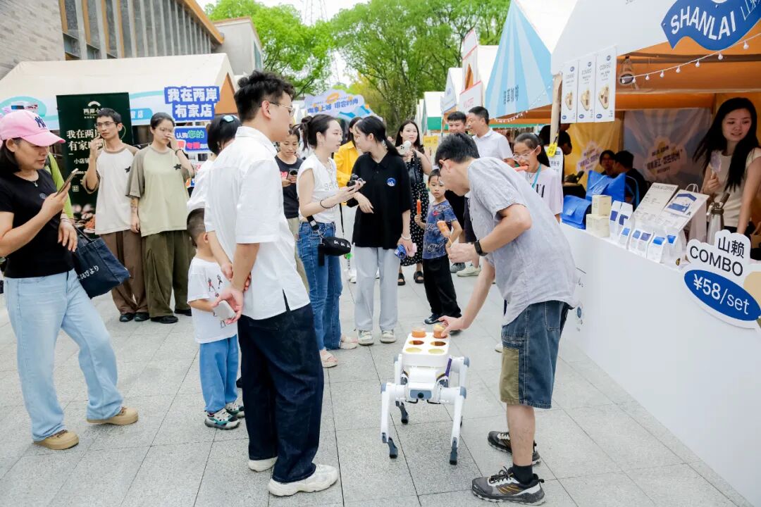 活动设有“六小龙”科技产品机械狗互动送咖啡、全自动机械臂无人制作咖啡等体验项目,充满了数字科技趣味。