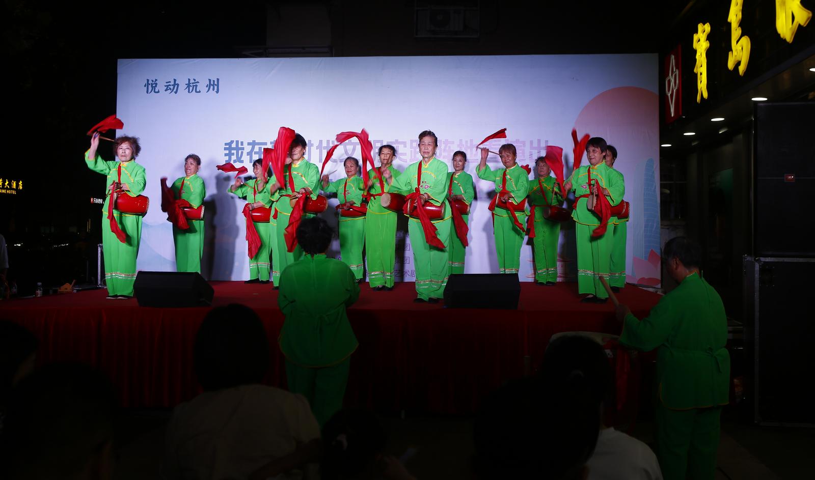 活动在金兰池社区腰鼓队的热烈表演中拉开帷幕,鼓点铿锵,气氛瞬间点燃。紧接着,开场舞《锦绣小康》、女声独唱《好一朵美丽的茉莉花》、口琴四重奏《分列式进行曲》等节目轮番上演。小品《贱儿饭》《妈妈说》贴近生活,笑点十足;曲艺说唱《爱家爱杭州》唱出了浓浓的家国情怀;绍兴莲花落《送你一杯绍兴酒》更是赢得阵阵掌声。最后,在歌伴舞《幸福中国一起走》的合唱声中,现场氛围达到高潮。
