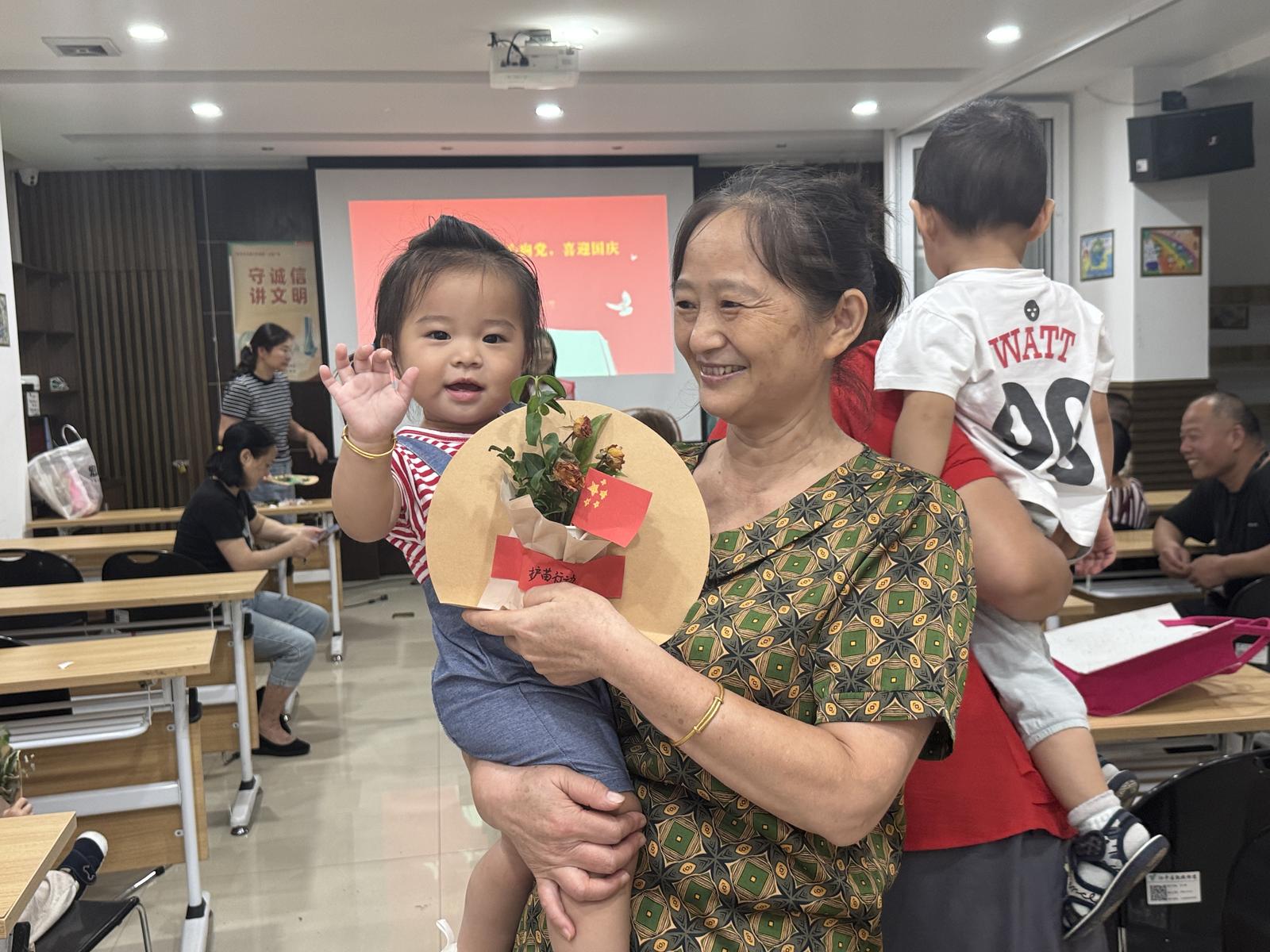 活动现场,最令人动容的是祖孙之间其乐融融的合作场景。这些年仅3岁以下的小朋友在爷爷奶奶手把手的引导下,认真参与每一个制作步骤。爷爷奶奶们不仅传授着手工技巧,更在不知不觉间将对祖国的热爱与祝福传递给孙辈。