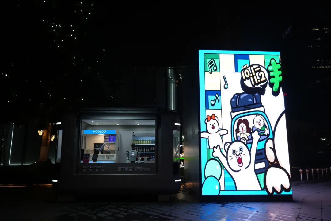 9月30日,当《稻香》《自由》的旋律在来福士门口响起时,伴舞的却是机器人——这些钢铁舞者踩着节拍、打着碟、比着心,走到观众面前向路人发出邀请: