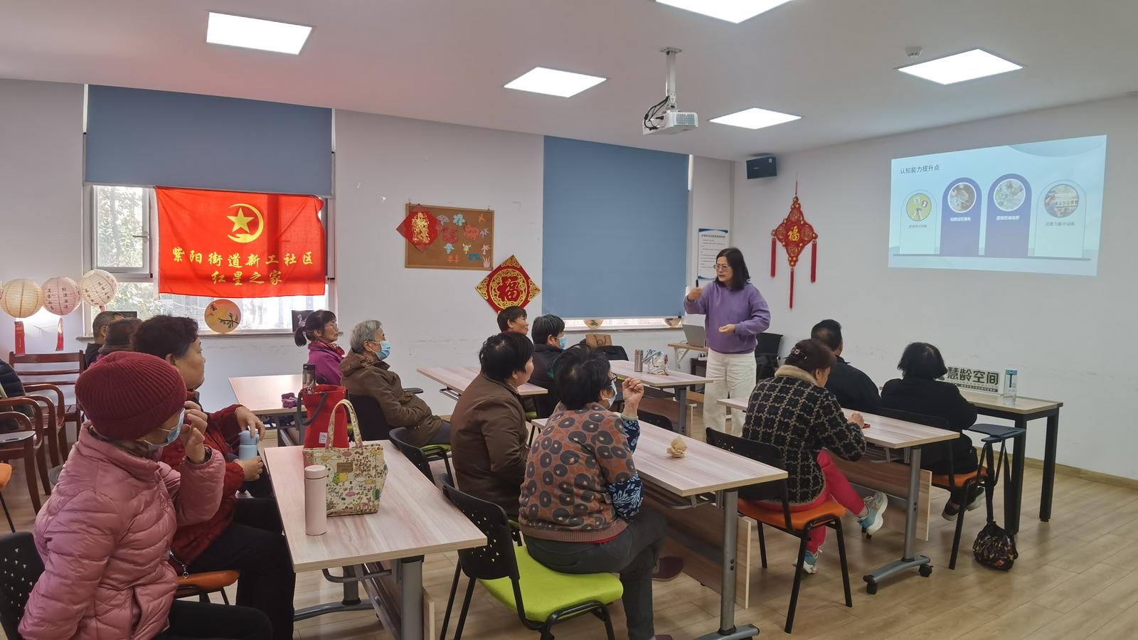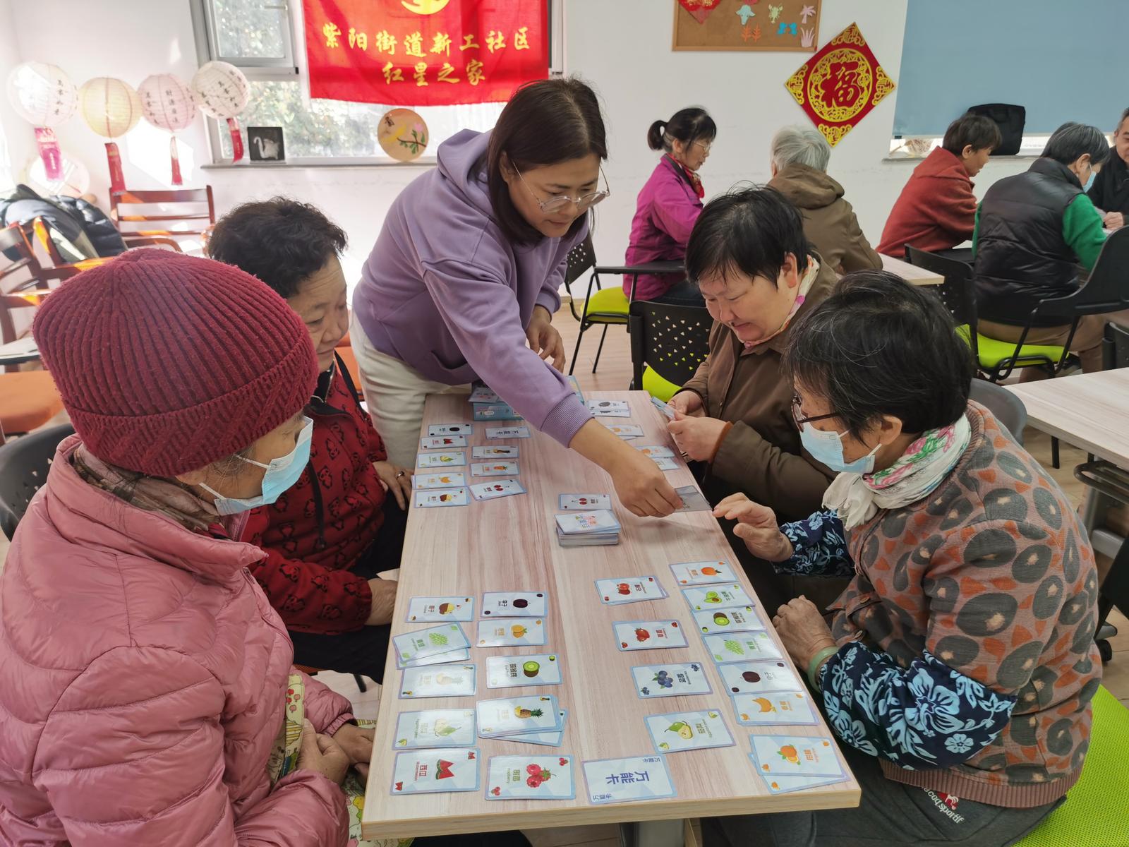 近日,由新工社区携手杭州市上城区紫阳街道唯康居家养老服务中心、上城区社区学院共同打造的“慧龄空间”,为辖区老年人精心策划了一场“水果大集结”卡牌益智游戏活动。老人们在趣味互动中激活思维活力,尽享晚年生活的欢乐滋味。