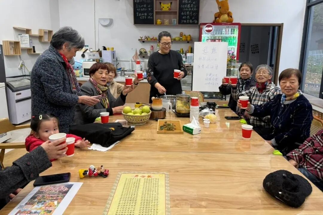 11月17日,“秋梨润心田”活动在阳光咖啡吧温馨开展。志愿者李老师向居民们讲解了秋季干燥易引发的不适,以及冰糖雪梨生津润燥、清热化痰的养生功效。接着,她把各种食材依次放入养生壶开始炖煮。当热气腾腾、香气四溢的冰糖雪梨出锅,李老师第一时间盛好送到各位居民手中。居民们纷纷手捧甜汤,细细品尝起来。他们喝着甜甜的梨汤,脸上都洋溢着幸福的笑容。红菱社区居民黄老师直言:“这碗汤暖了胃,更暖了心。”