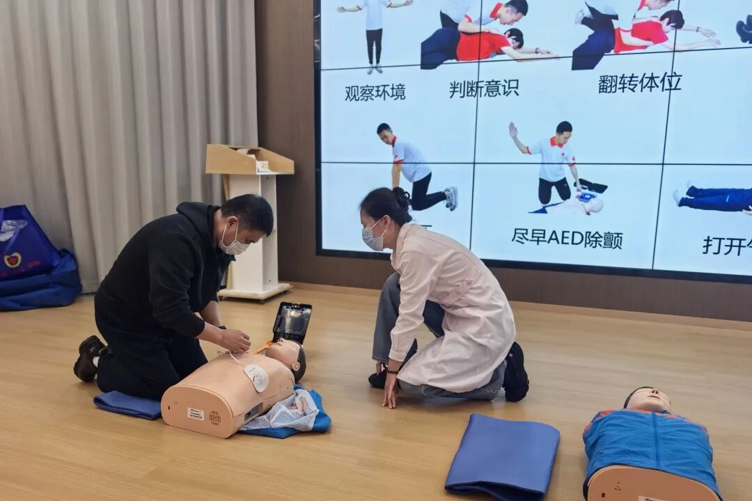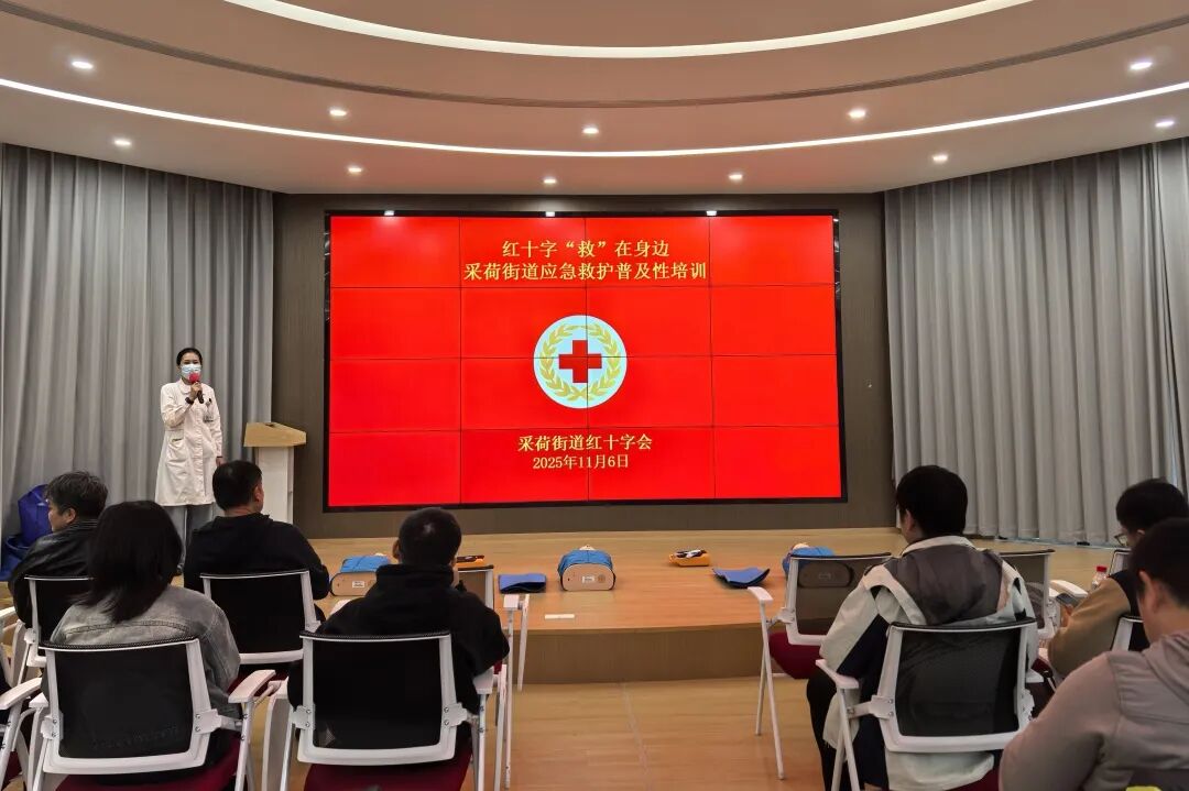 11月6日,中心邀请采荷街道社区卫生服务中心医生,在映荷厅现场普及应急救护知识和技能。通过实操,参训人员掌握心肺复苏(CPR)、自动体外除颤器(AED)使用等关键急救技术。此次培训提升了街道、社区工作人员应对突发事件和意外伤害的自救互救能力,切实保障群众生命安全与健康,营造了“人人学急救,急救为人人”的安全氛围。