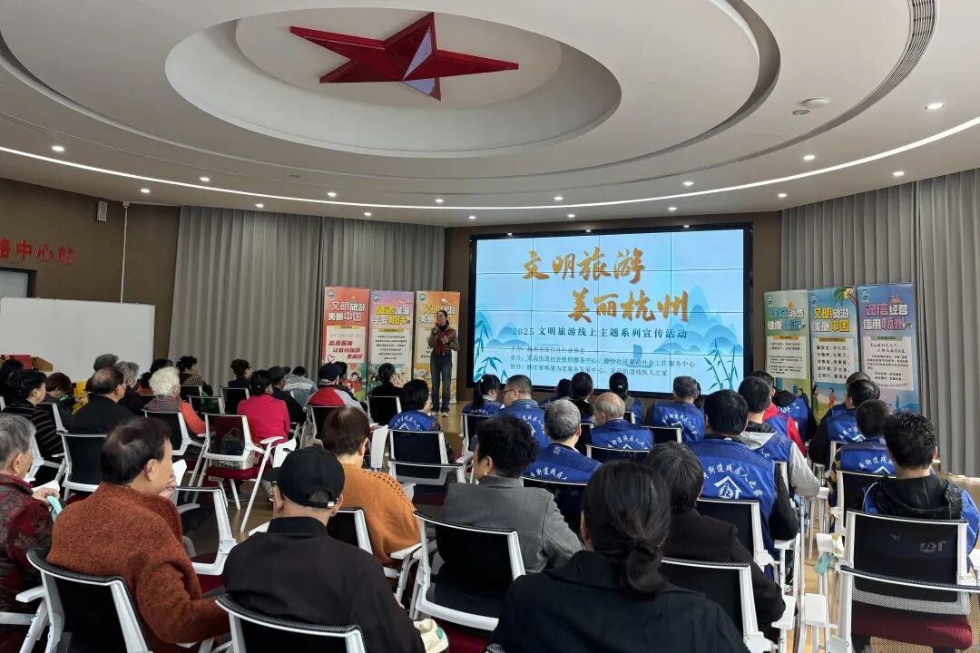 11月14日上午,一场生动有趣的文明旅游课堂在映荷厅开展,现场通过案例分享、知识普及、有奖竞猜等形式,向广大社区居民传递文明旅游理念,通过寓教于乐的方式,提升居民的文明旅游意识,引导大家在出游过程中自觉遵守公共秩序、爱护环境卫生,共同营造文明和谐的旅游环境。