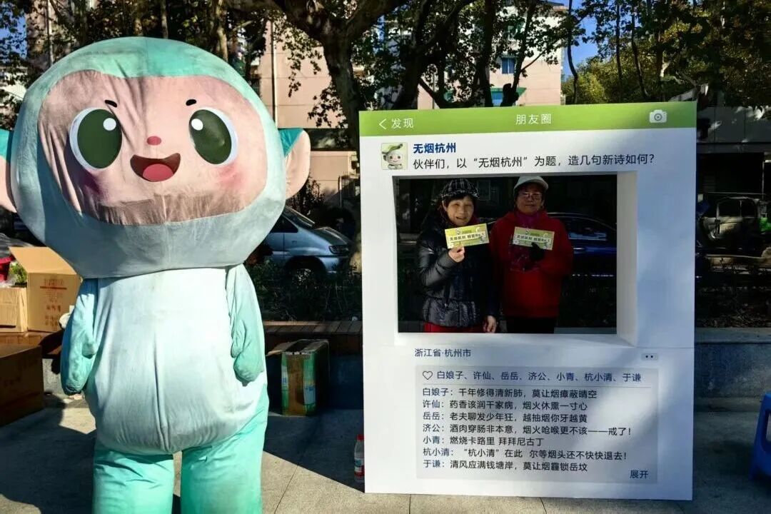 11月20日下午,“无烟杭州 创意No.1”主题宣传暨慢阻肺防治宣传活动在中心广场上顺利开展,现场热闹非凡,活动内容丰富,结合“无烟杭州”、“世界慢阻肺日”、“联合国糖尿病日”等多个健康主题,工作人员和萌萌的“杭小清”无烟杭州IP形象,一起把控烟护肺、慢病防治的相关健康知识送到了居民家门口。