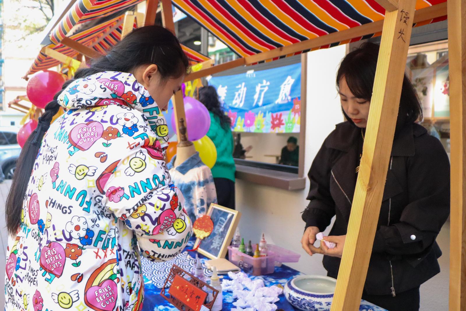 本次活动的核心亮点是“心光集市”。该集市旨在将传统的“被动受助”转变为“主动创造”。在这里,残障人士不再是单纯的参与者,而是“摊主”“导览员”和“手艺传承人”,在志愿者的辅助下,自信地向社会展示自己的劳动成果与艺术才华。一位在“梦想手作”区负责销售的残疾人之家学员感慨道:“在‘残疾人之家’老师的帮助下,我学会了做针织花、艾草养生锤、香薰蜡烛。今天能在集市上把它卖出去,听到大家的夸奖,我感觉自己特别有价值。”这正是南星街道残联致力于实现的目标,让每一位残疾人都能成为价值的创造者和贡献者。