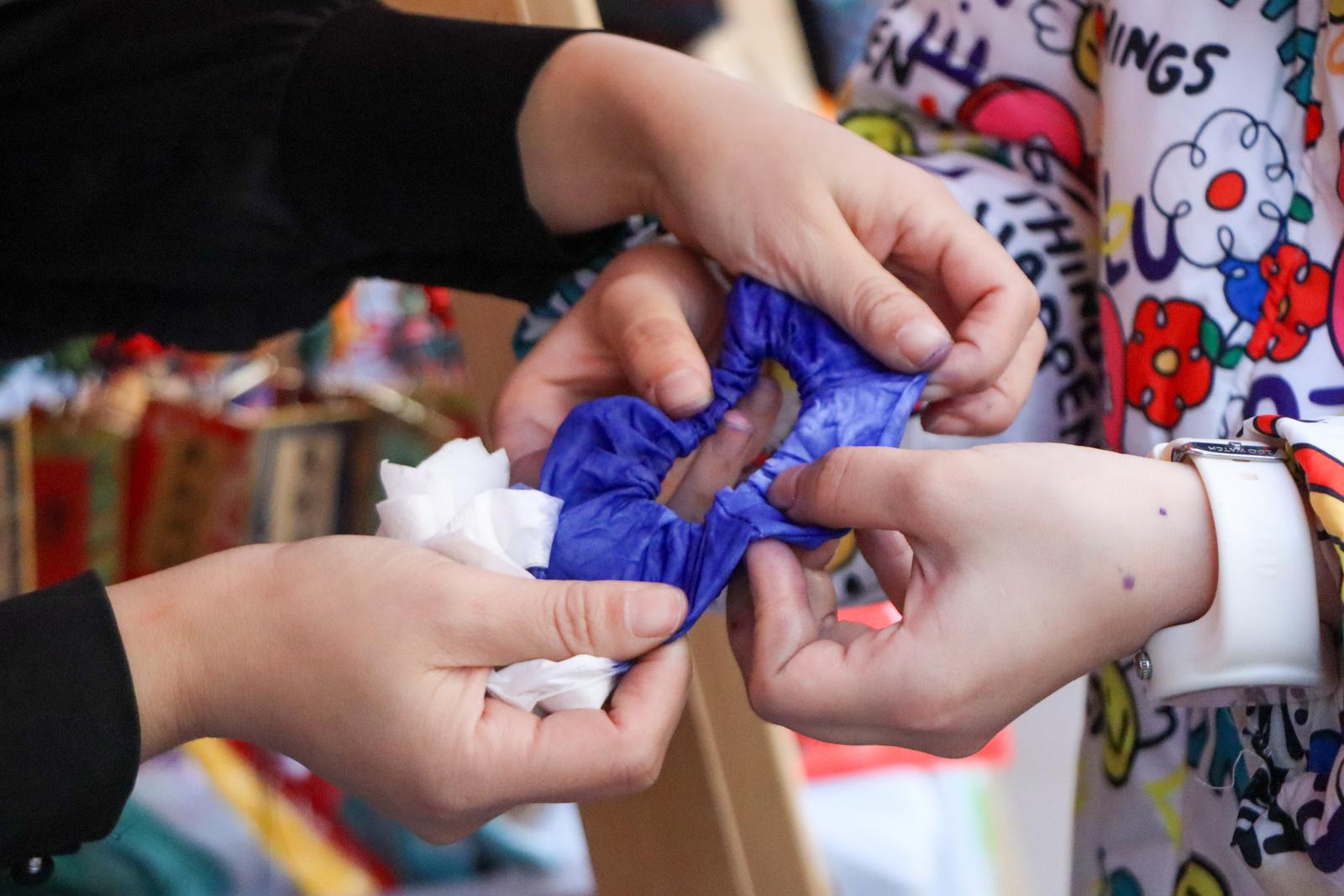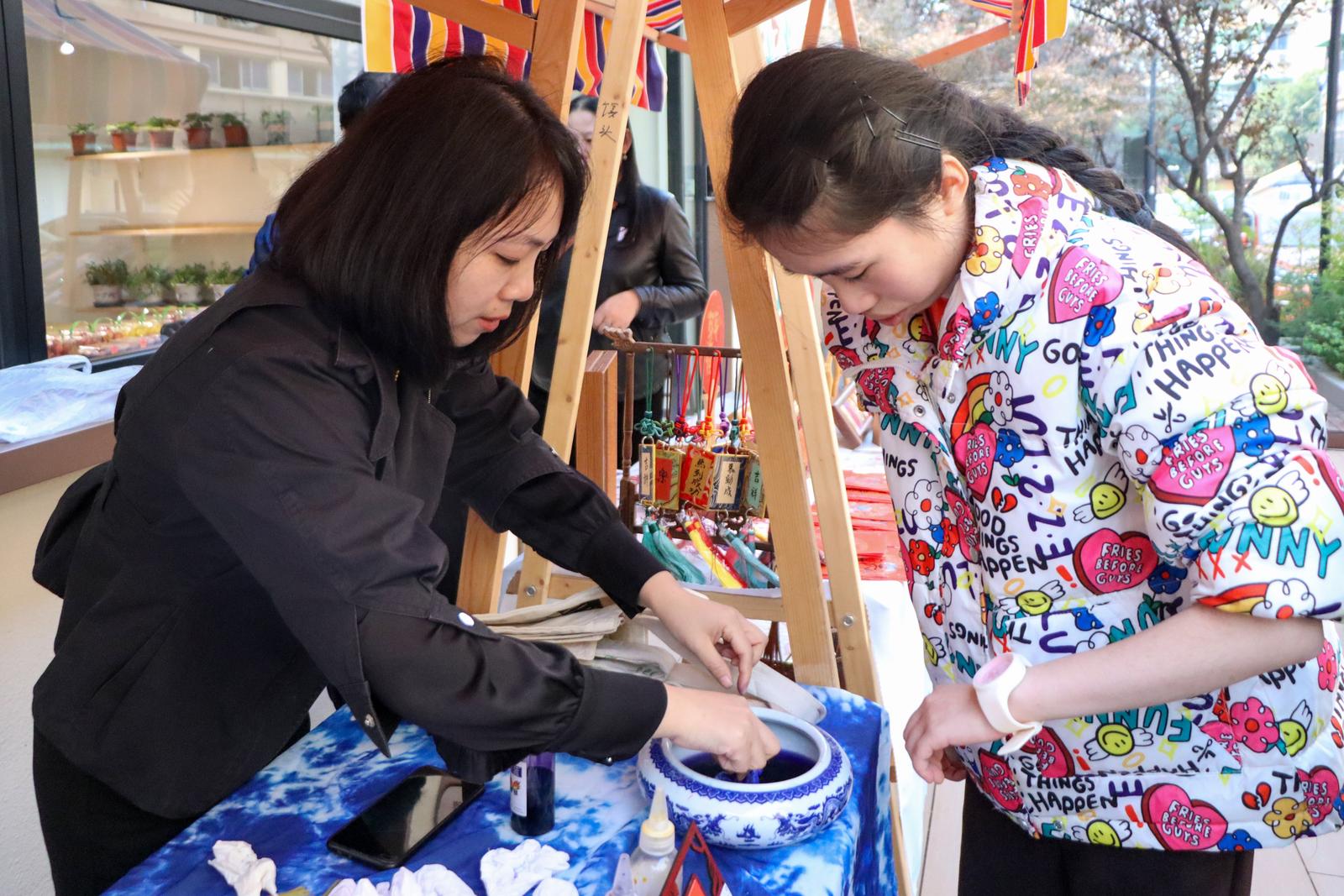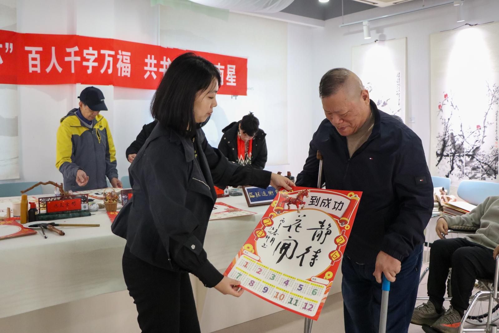 在备受好评的艺术体验环节,街道残联链接本土文化资源,携手“竹云书画社”为学员带来“巧手扎染”“非遗剪纸”“福至心光”等活动。竹云书画社负责人方竹云老师在现场动情地表示:“每次来参加活动,我都能被学员们的专注和创造力深深打动。艺术没有边界,它能直达心灵。我们书画社非常愿意持续参与这样有意义的公益事业,用笔墨色彩为朋友们的生活增添更多美好。”一位学员捧着自己染制的布艺作品,激动地分享:“街道总是能组织这么有意思的活动,让我们觉得生活不再是单调的,我们也能创造出好看的东西。”