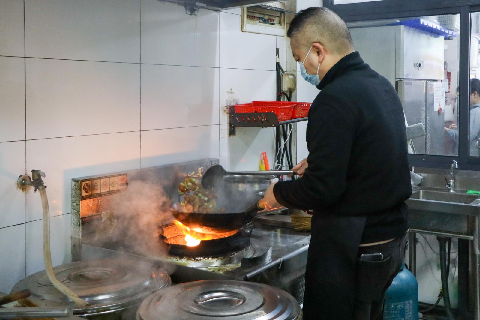 “家里面是煤气灶,那个火开到最大都不会特别大的。”老板娘小叶形容道,“但店里的灶,火是‘冒出来’的。”