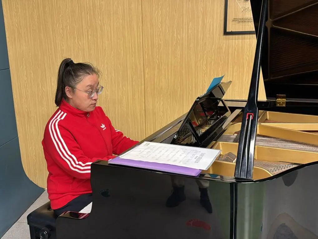 “弯湾”托管中心的学员正在弹奏钢琴曲。新华社记者 郑可意 摄