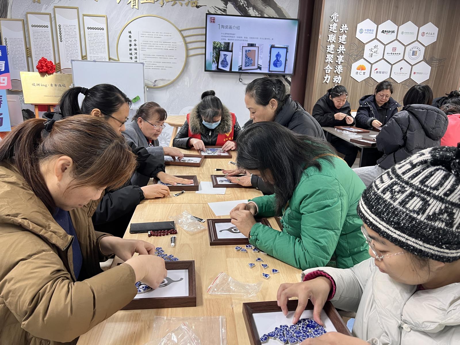 瓷片手作中贴出新年“福禄”