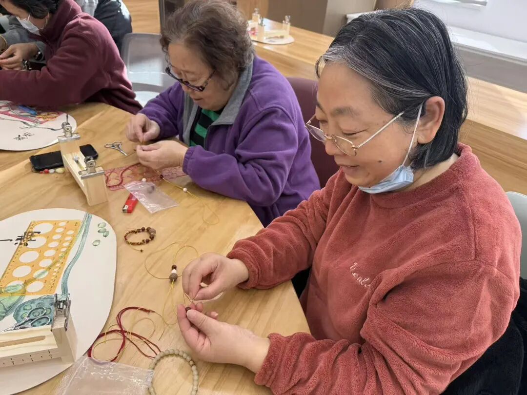12月9日,“合香雅韵·匠心编织”活动在阳光同心开展。活动现场,大家将中药材制成的香珠与各式配饰、线材巧妙搭配,在非遗老师细致指导下动手创作:串珠、编绳、打结,每一个步骤都充满技巧。大家时而低头钻研,时而轻声探讨,在欢声笑语中完成了一件件独一无二的作品,迫不及待地戴在手腕上,相互欣赏,脸上满是成就感与幸福感。