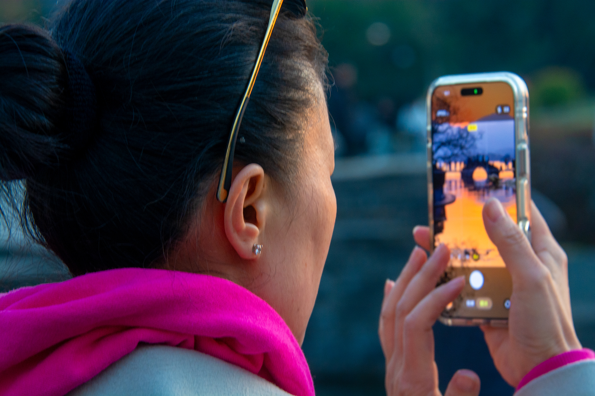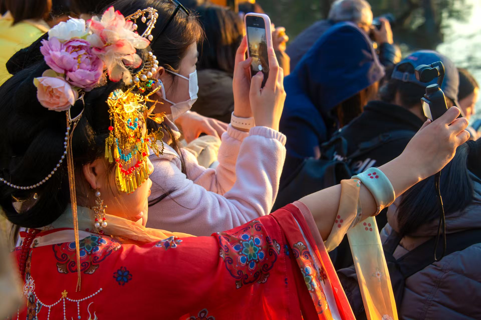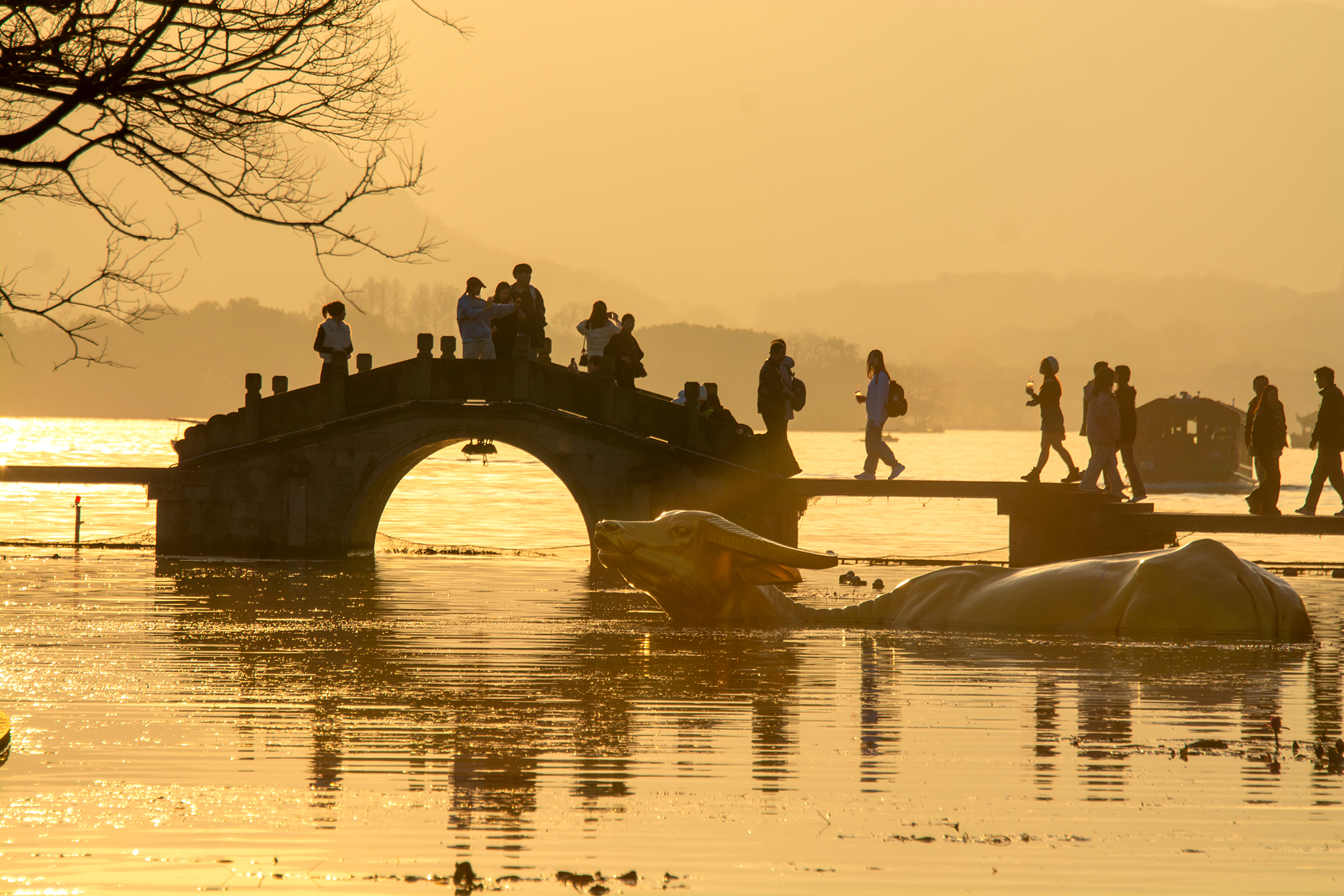 #遇见美好上城# 冬日的黄昏,涌金门外铺开一片鎏金画布,人潮在此汇流,收藏城市最温柔的时刻#在这里爱上一座城#(资料:紫阳街道 张关春/攝)
