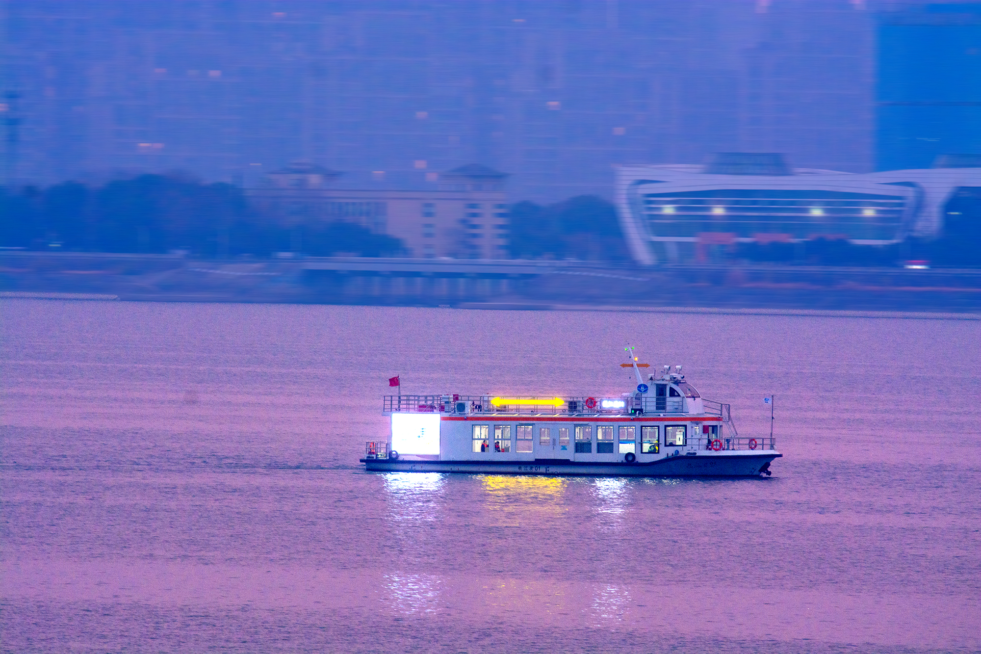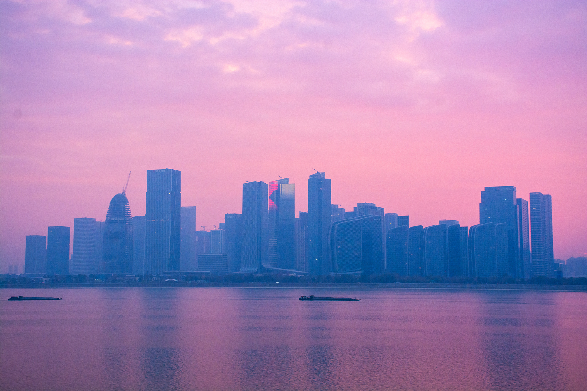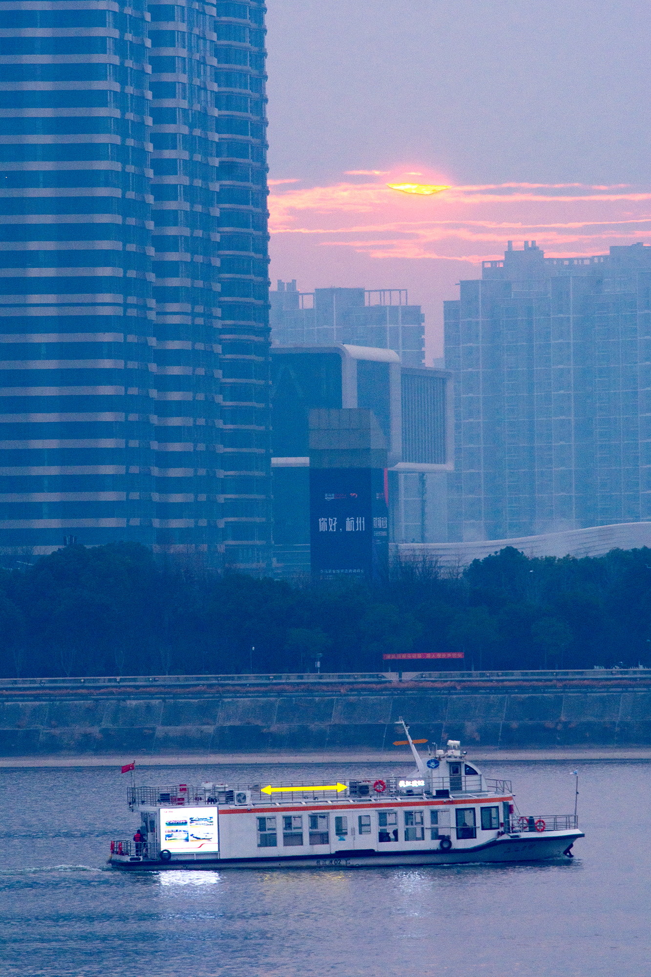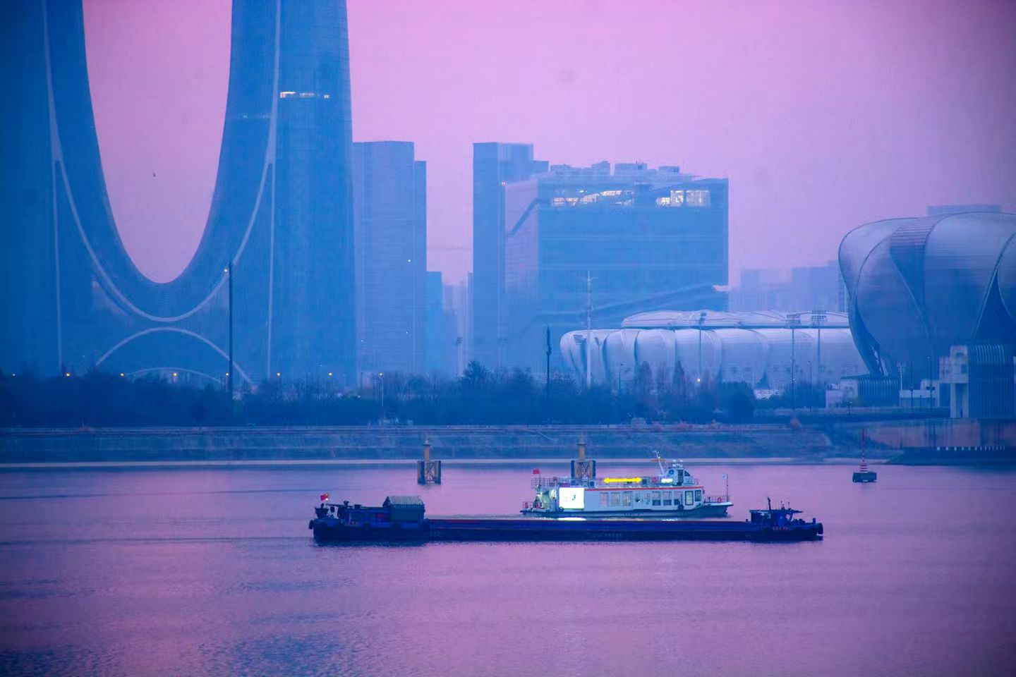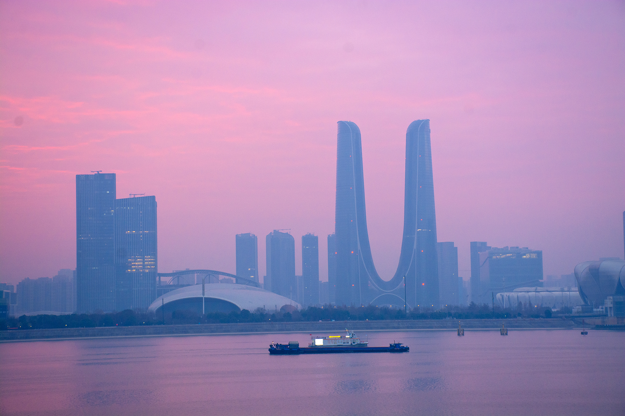 #遇见美好上城# 钱江新城的晚风里,隔江凝望奥体博览中心的轮廓,游船划过紫绯色绸缎,暮色为城市披上温柔滤镜#在这里爱上一座城#(资料:紫阳街道 张关春/攝)
