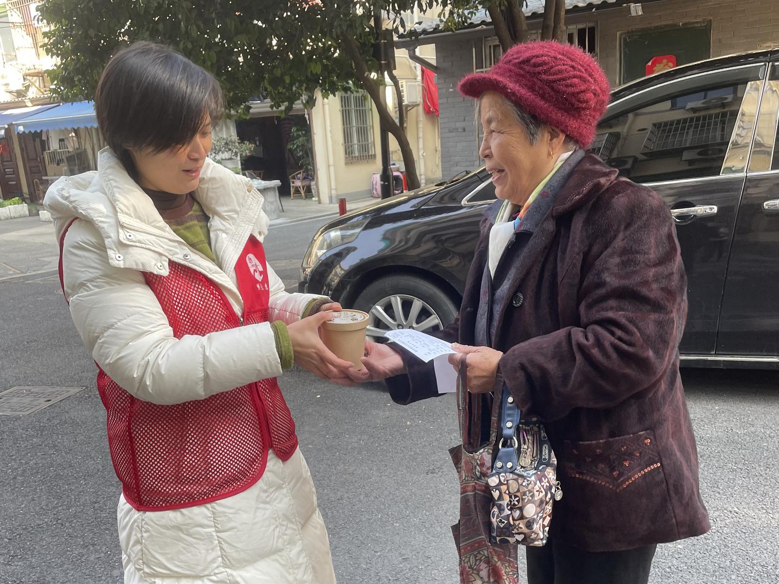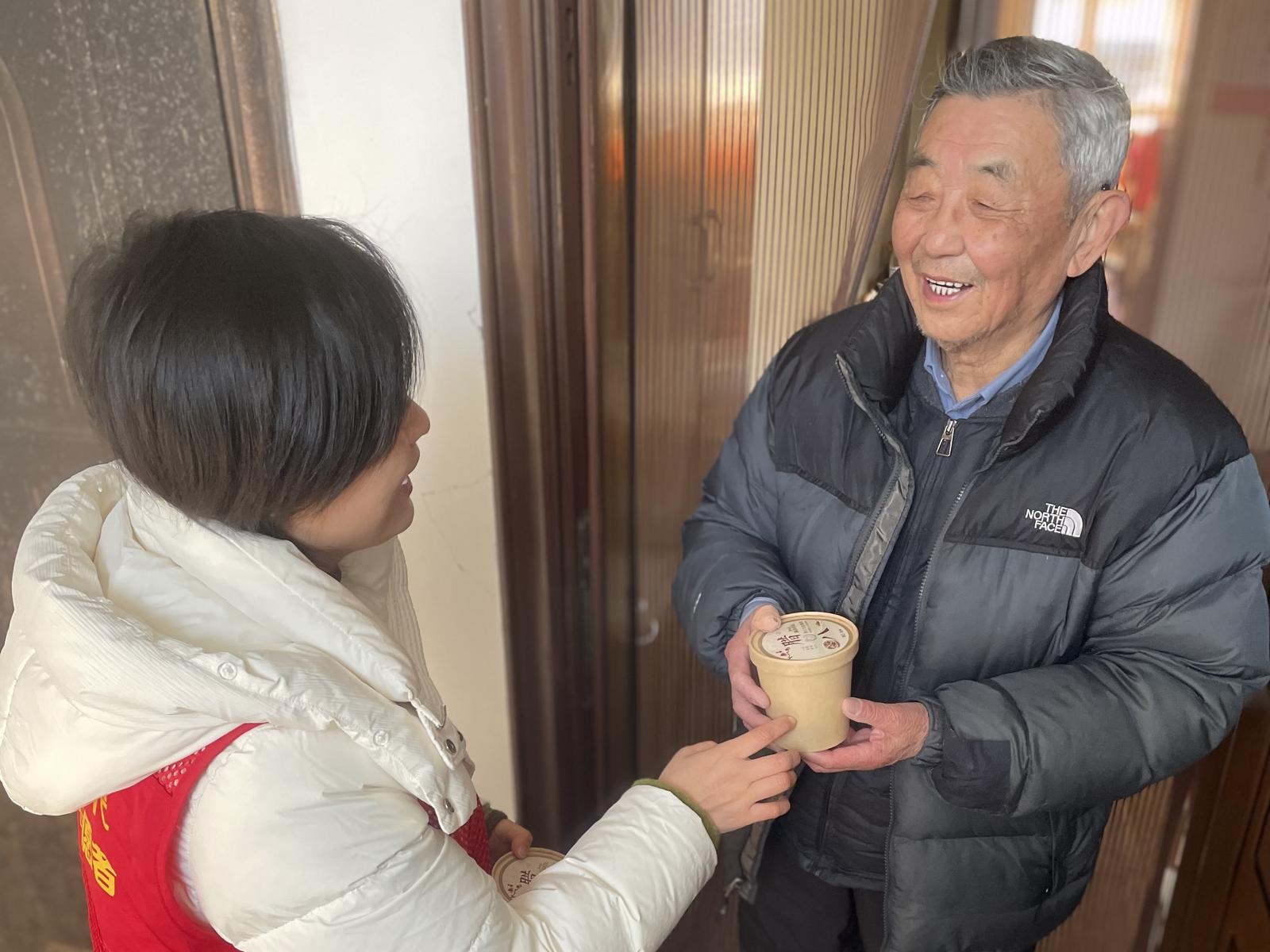送粥当日,社区工作人员与志愿者组成多个慰问小组,带着分装整齐的腊八粥入户走访。“王阿姨,腊八节快乐!这是社区联合公益单位给您送的腊八粥,趁热喝。”每到一户,工作人员都细心叮嘱老人注意冬季保暖,关切询问生活起居情况。接过温热的腊八粥,高龄老人们脸上洋溢着幸福的笑容,纷纷感慨:“社区想得太周到了,这碗粥喝在嘴里,暖在心里!”一碗碗腊八粥不仅驱散了冬日的严寒,更拉近了社区与居民、社会力量与群众之间的距离,让高龄群体切实感受到社区大家庭的温暖与关怀。