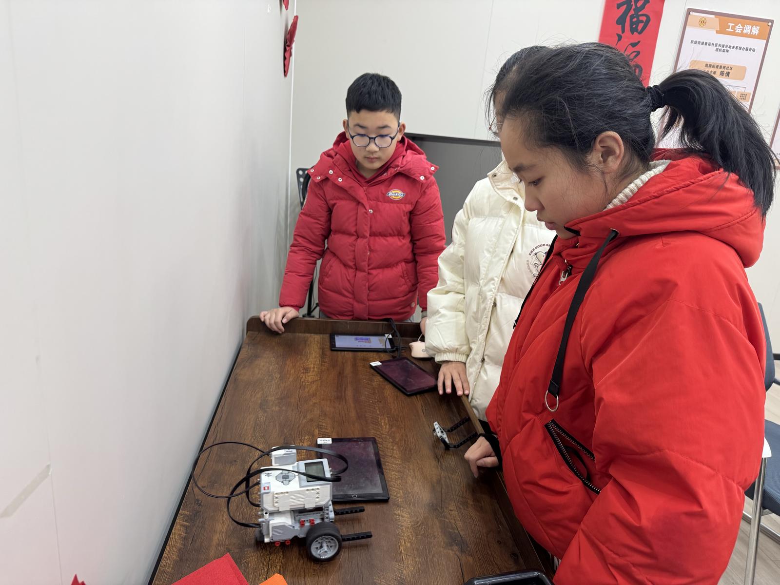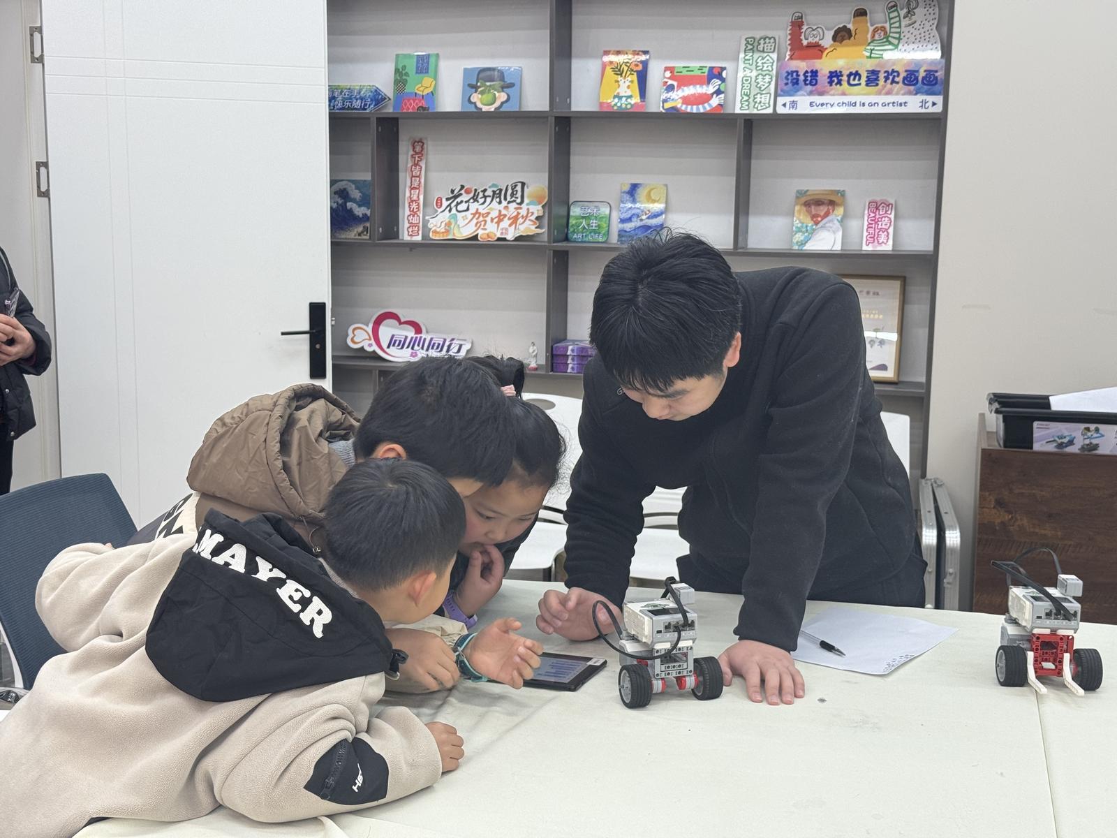 活动伊始,专业编程老师手持机器人模型,为孩子们详细演示了机器人 “行走” 的核心原理。通过直观的操作演示,老师清晰讲解了如何通过代码精确控制机器人的直行距离和转弯角度,让抽象的编程逻辑变得生动易懂。在理论讲解结束后,孩子们迫不及待地分组投入到实践操作中。他们围坐在桌前,专注地盯着编程设备屏幕,手指在平板上快速敲击,不断调整代码参数,尝试让机器人完成直行、转弯等动作。遇到难题时,大家互相讨论、分工协作,在一次次的调试与探索中,逐步掌握了编程技巧。当看到自己编写的代码成功驱动机器人完整运行一圈时,孩子们的脸上都洋溢出兴奋与自豪的笑容,现场充满了欢声笑语。