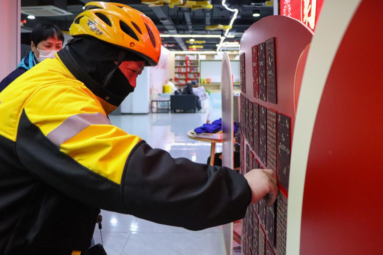 南星街道党群服务中心一楼暖意融融、人头攒动。这里化身成为一座温暖的“服务驿站”,专为快递员、外卖小哥等新就业群体开设了理发、按摩、量血压等贴心服务。来自凤凰公益的志愿者们手艺娴熟、服务周到,让大家在忙碌的间隙得以放松身心。一旁,尚屏书画社的老师们挥毫泼墨,一副副寓意吉祥的春联、一张张笔力遒劲的“福”字,承载着最传统的新春祝福,赠送到小哥们手中。