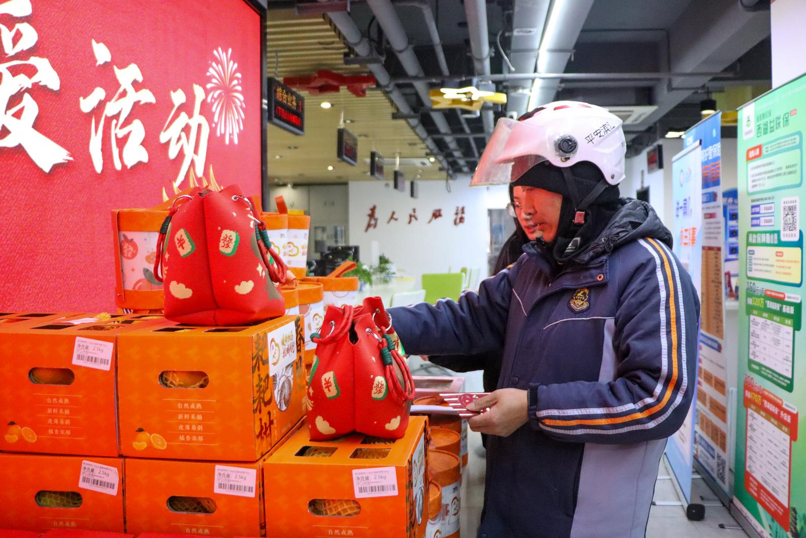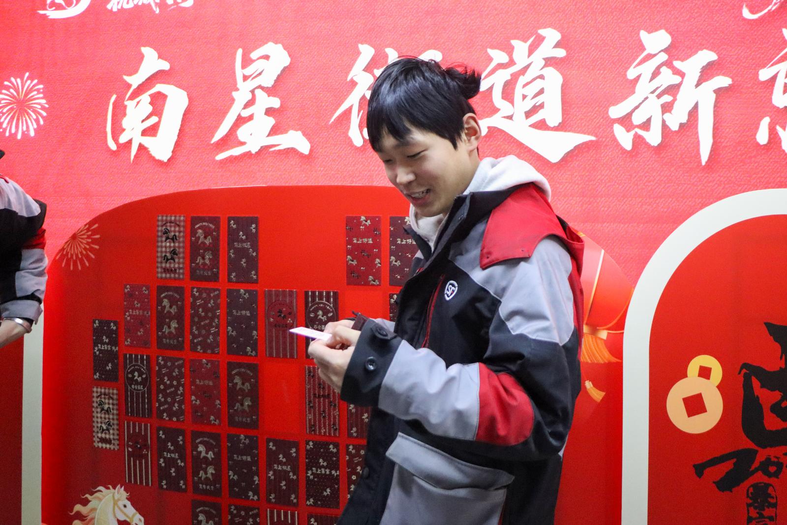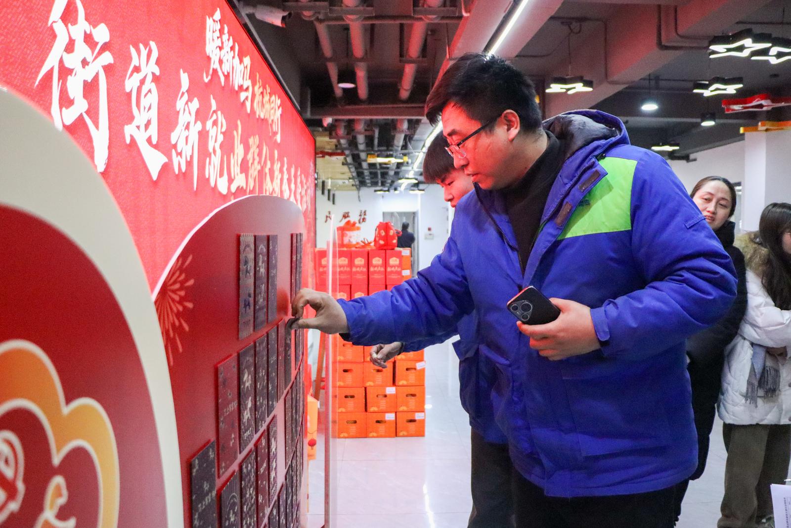 最受期待的幸运盲盒抽奖环节更是气氛热烈。神秘有趣的盲盒、新鲜可口的水果礼盒和营养丰富的坚果礼盒——等待着幸运儿的开启。现场热火朝天,惊喜的欢呼声此起彼伏。一份份奖品,不仅是一份新年运气,也是藏在年味里的关怀。“没想到不仅能免费理发、领福字,还抽到了水果礼盒,街道太贴心了!”刚抽到奖品的外卖骑手小李开心地说道。
