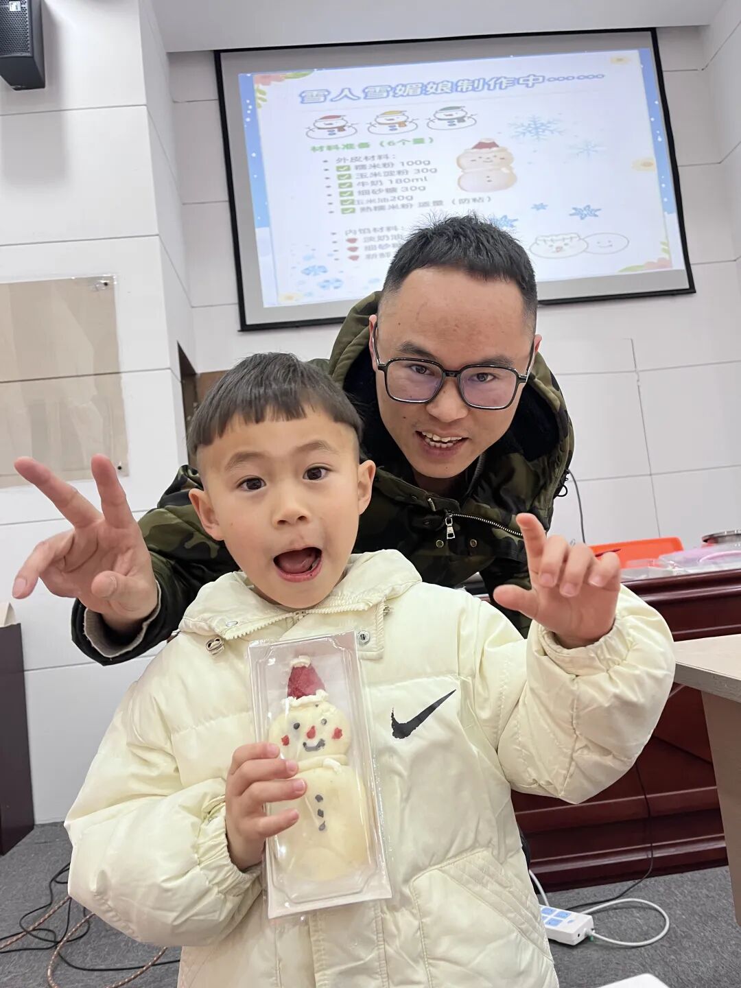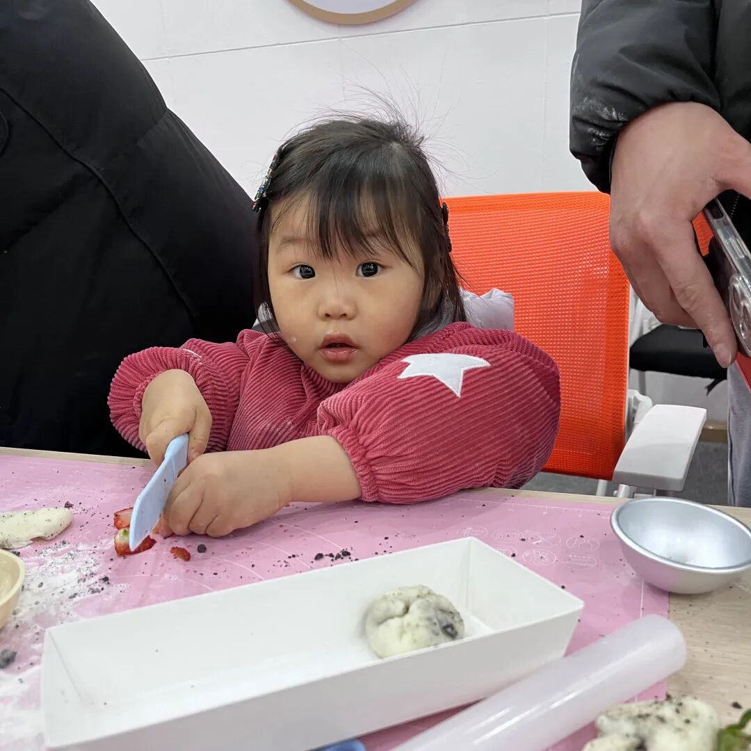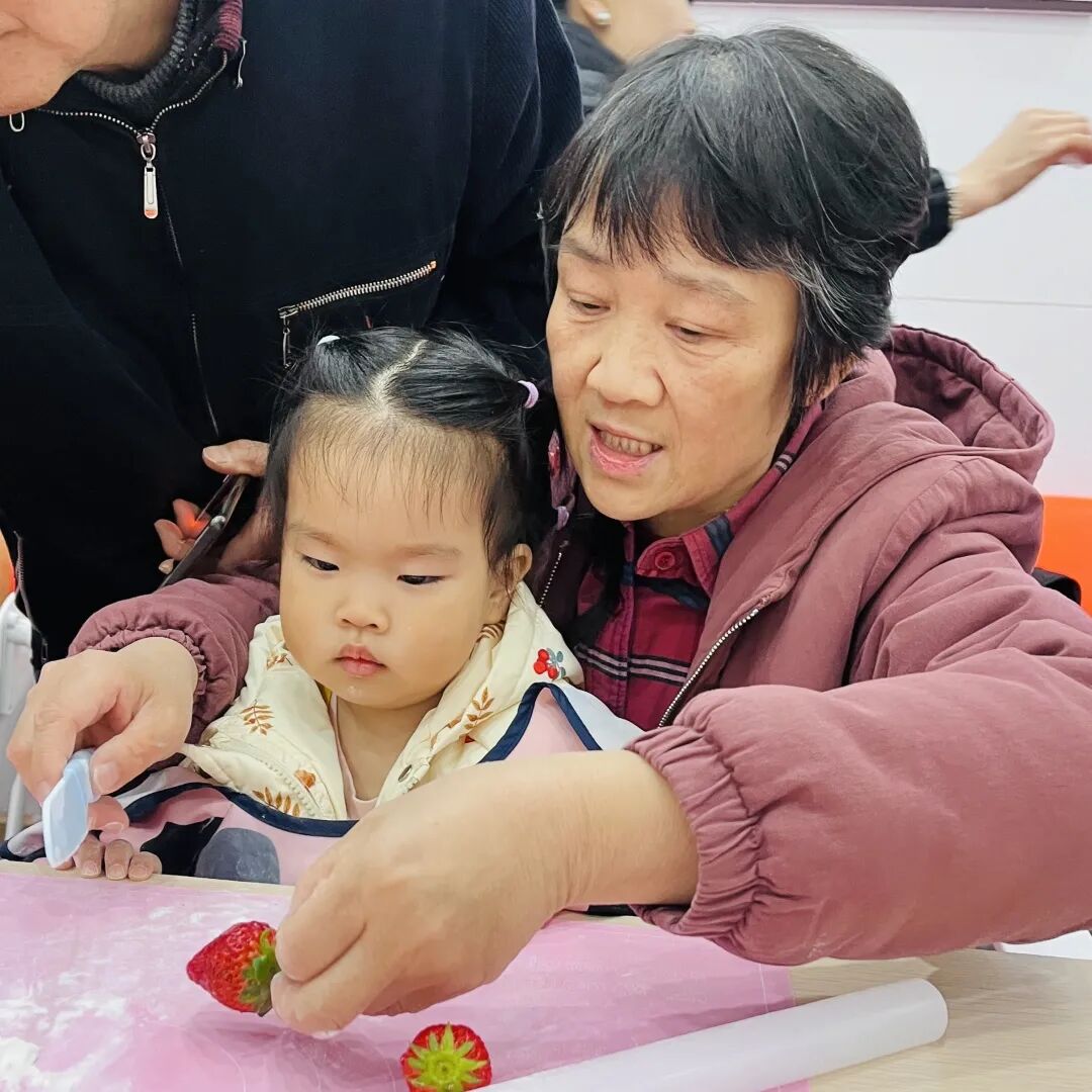 活动现场,家长与萌娃们在专业老师的指导下,共同完成雪媚娘的制作。从揉制冰皮到包入奶油馅料,再到塑造成可爱的雪人造型,每一个环节都充满了欢声笑语。这不仅锻炼了宝宝的手部精细动作和感官认知能力,更通过亲子协作的过程,有效增进了家长与孩子之间的情感联结。