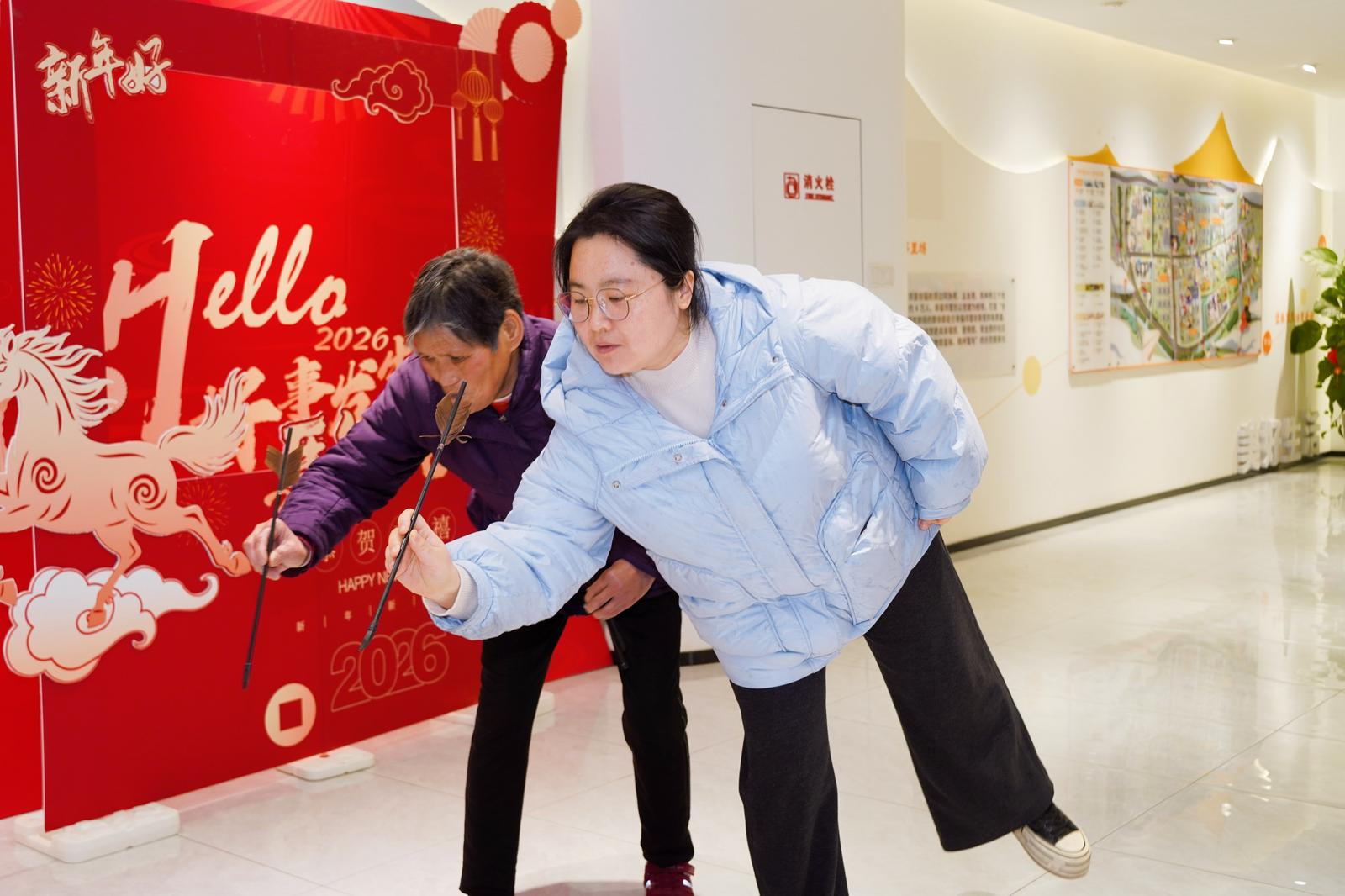另一边的传统投壶区同样热闹非凡,无论是白发苍苍的老人,还是活泼可爱的孩童,都纷纷摩拳擦掌、跃跃欲试。大家手持箭杆,瞄准壶口,小心翼翼地投掷,每一次精准入壶都能引来满堂喝彩,成功投中者接过精美的小礼品。