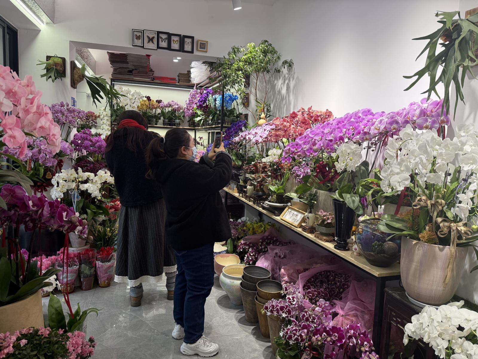 在一家生意兴隆的店铺前,店主唐先生正忙碌地招呼客人。他笑着向社区工作人员介绍:“要说哪种花最受欢迎、卖得最好,那肯定还是蝴蝶兰。它寓意好,花期又长,摆在家里特别提气,是过年装饰的“硬通货”。 谈到销售人群的变化,唐先生感触颇深:“以前啊,来买蝴蝶兰的基本都是中老年人,讲究个寓意和传统。但这几年明显不一样了,年轻人成了重要的消费群体。很多80后、90后,甚至00后都来买,他们更喜欢那些颜色特别、造型新颖的品种,买回去装点自己的小家,拍照分享到社交平台,或者作为别致的新年礼物送给朋友。”
