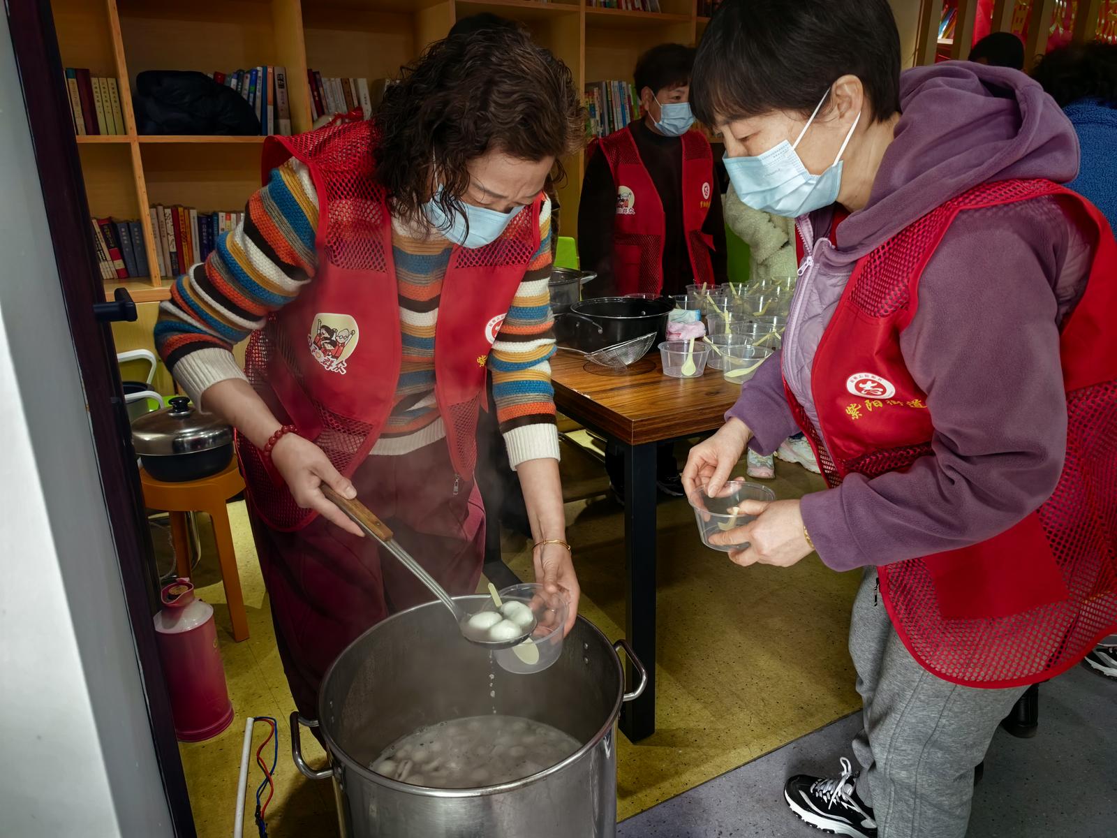 猜完灯谜,暖心的元宵品鉴环节将活动氛围推向高潮。社区工作人员与志愿者提前备好食材,现场煮制元宵,不一会儿,热气腾腾的元宵就出锅了。白白胖胖的元宵软糯香甜,承载着“团团圆圆、幸福美满”的美好寓意。工作人员将一碗碗热乎的元宵送到居民手中,尤其优先照顾到场的老年朋友,叮嘱大家趁热吃。居民们围坐在一起,一边品尝香甜的元宵,一边闲话家常,聊社区的新变化,谈新年的新期盼,欢声笑语间,邻里情谊悄然升温,整个党群服务中心洋溢着温馨和谐的气息。