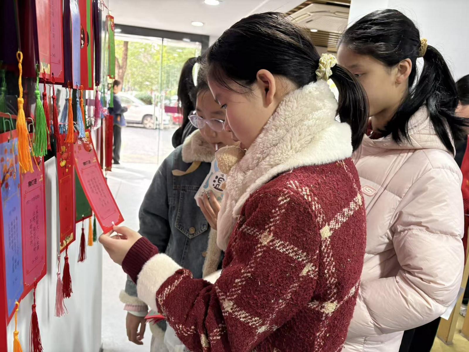活动现场张灯结彩,年味十足。在社区新时代文明实践站,一条条涵盖民俗知识、成语典故、生活常识的灯谜错落悬挂,谜面趣味盎然,谜底暗藏巧思,形成了一道独具特色的“灯谜长廊”。活动伊始,居民们便纷纷驻足凝神思索,有的独自推敲谜底,有的三五成群热烈讨论,还有的带着孩子一起分析谜面,现场不时传来恍然大悟的笑声和猜对谜底的欢呼声。志愿者及时为猜中谜底的居民送上精美小礼品,大家在开动脑筋的同时,也收获了满满的喜悦。