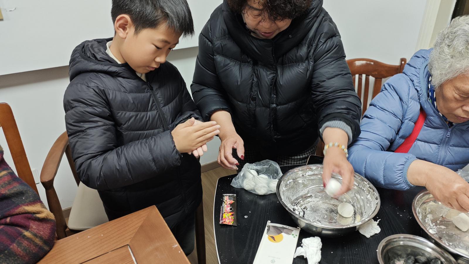 居民一起动手包汤圆