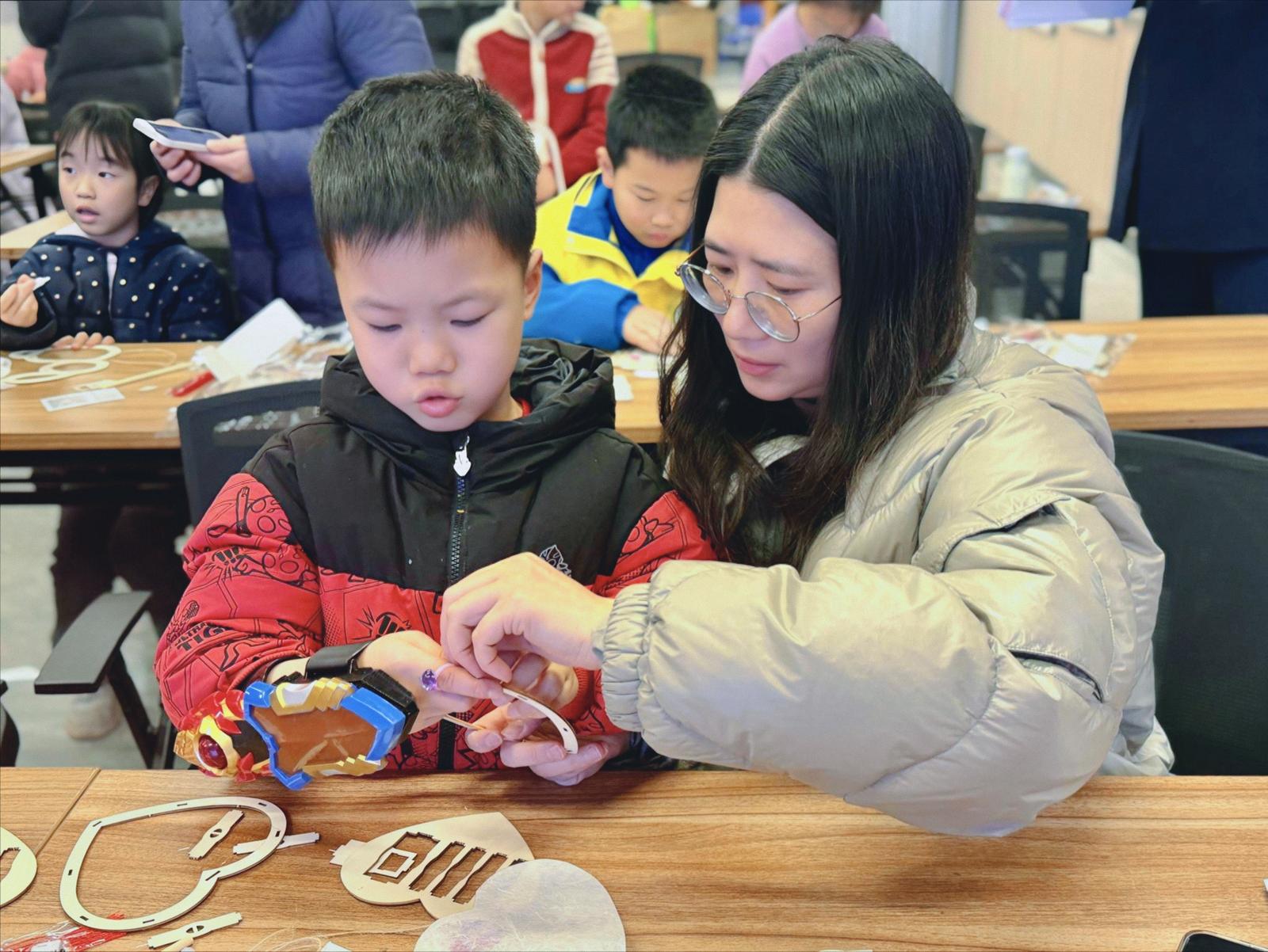 揭牌仪式后,元宵主题亲子手工活动温馨开启。志愿者老师指导青少年与家长共同制作元宵灯笼,现场准备适配不同年龄段的材料与节日小礼品,孩子们在动手实践中感受传统民俗魅力,现场洋溢着欢声笑语与团圆气息。