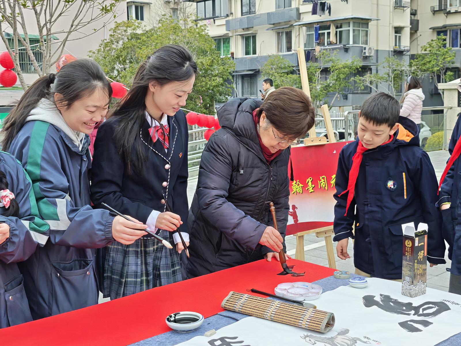 元宵佳节春意浓,翰墨飘香润人心。为弘扬中华优秀传统文化,将传统文化融入马年主题,活动现场景新书画院老师和社区青少年挥毫泼墨,共书百马长卷,上城区关工委常务副主任刘兴仙给青少年们介绍了元宵节的习俗和“马”的精神,并为长卷开笔,写下“和美”二字,祝万家团圆。随后青少年们在现场跟老师们书写各种“马”,并书写“元宵”“一马当先”“马跃新程”等吉祥语福卡,用书法表达对团圆佳节的美好期许和对祖国繁荣昌盛的祝愿。