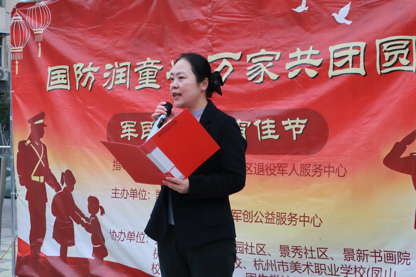 活动伊始,凯旋街道党工委委员、办事处副主任傅萍致辞。她向现场居民致以节日祝福,表示活动依托社区民生服务综合体,在弘扬传统文化的同时创新融入国防元素,切实增强全民国防观念,并对各单位及志愿者的辛勤付出表示感谢。