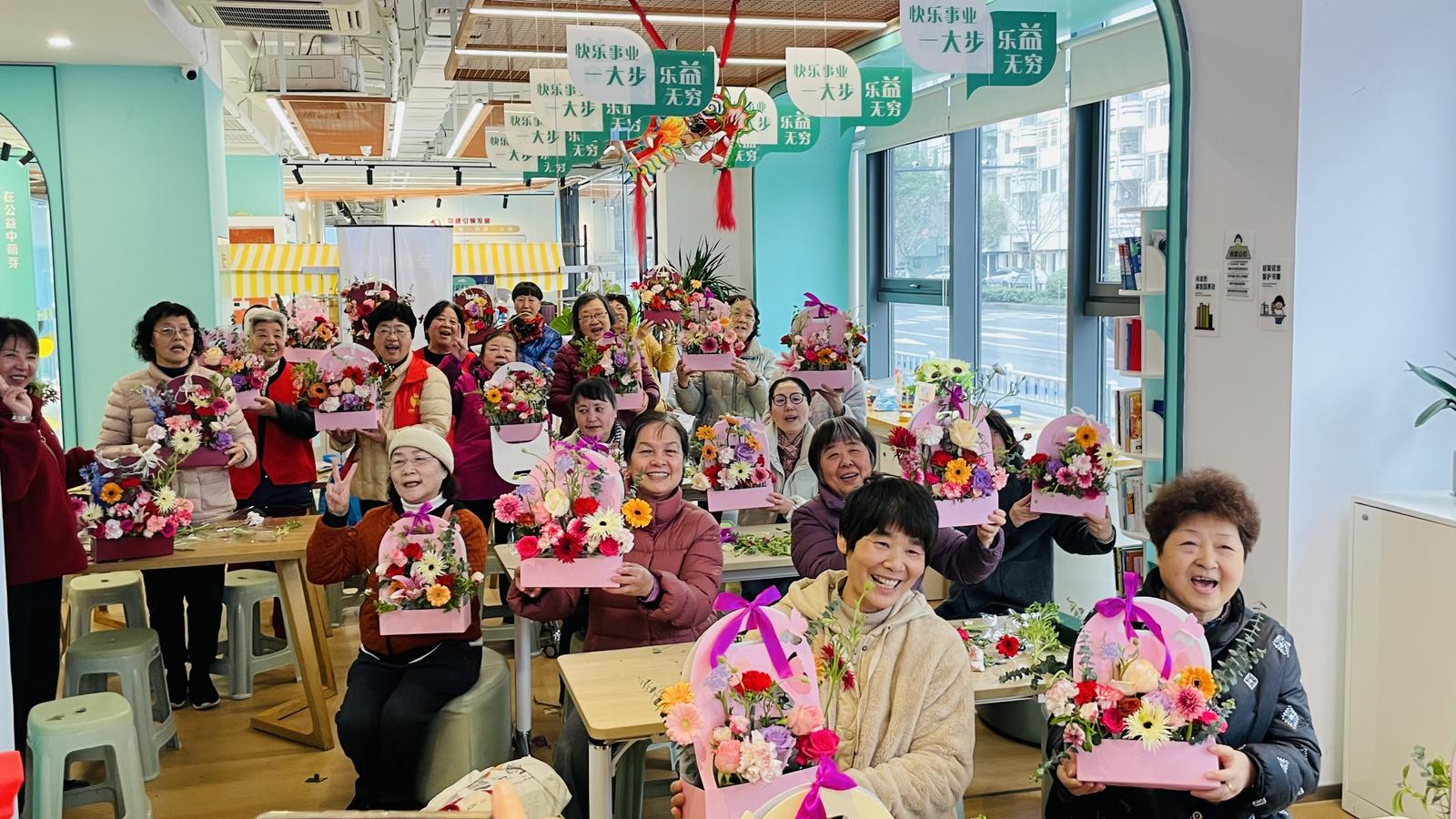 “平时在家就是围着灶台和孩子转,今天能出来和大家一起做做手工,说说笑笑,感觉特别放松,这花越看越喜欢。”居民王阿姨捧着自己的作品,脸上洋溢着满足的笑容。现场既有退休阿姨的沉稳细致,也有年轻女性的时尚创意,大家互相欣赏作品,拍照留念,记录下这美好的瞬间。