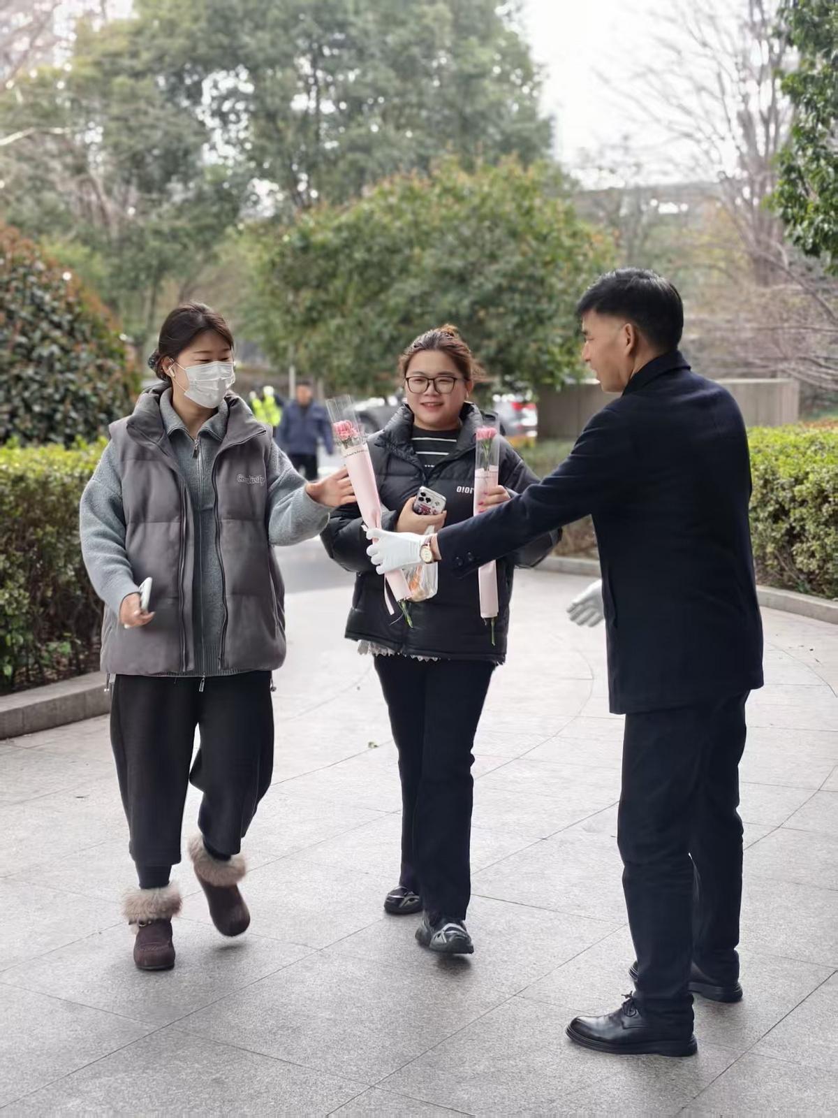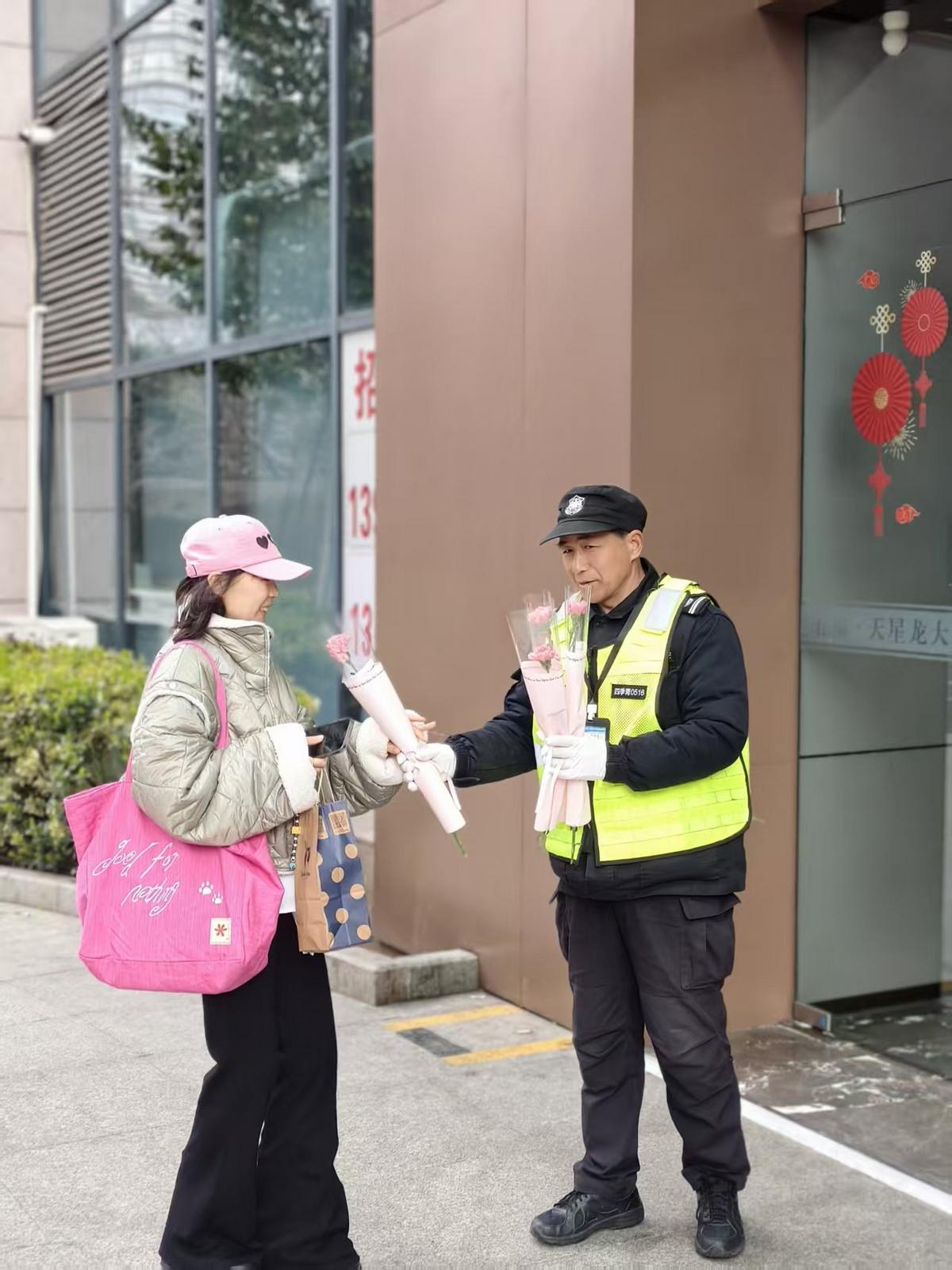 三八国际妇女节来临之际,五福·天星龙大厦物业服务中心联合楼宇党支部在大厦A/B座大厅开展“活得漂亮,做世界最美的风景”送花活动。党员同志与物业工作人员为楼宇女青年送上鲜花与节日祝福,以暖心行动传递关怀,彰显党建引领下的楼宇温情与服务温度。
