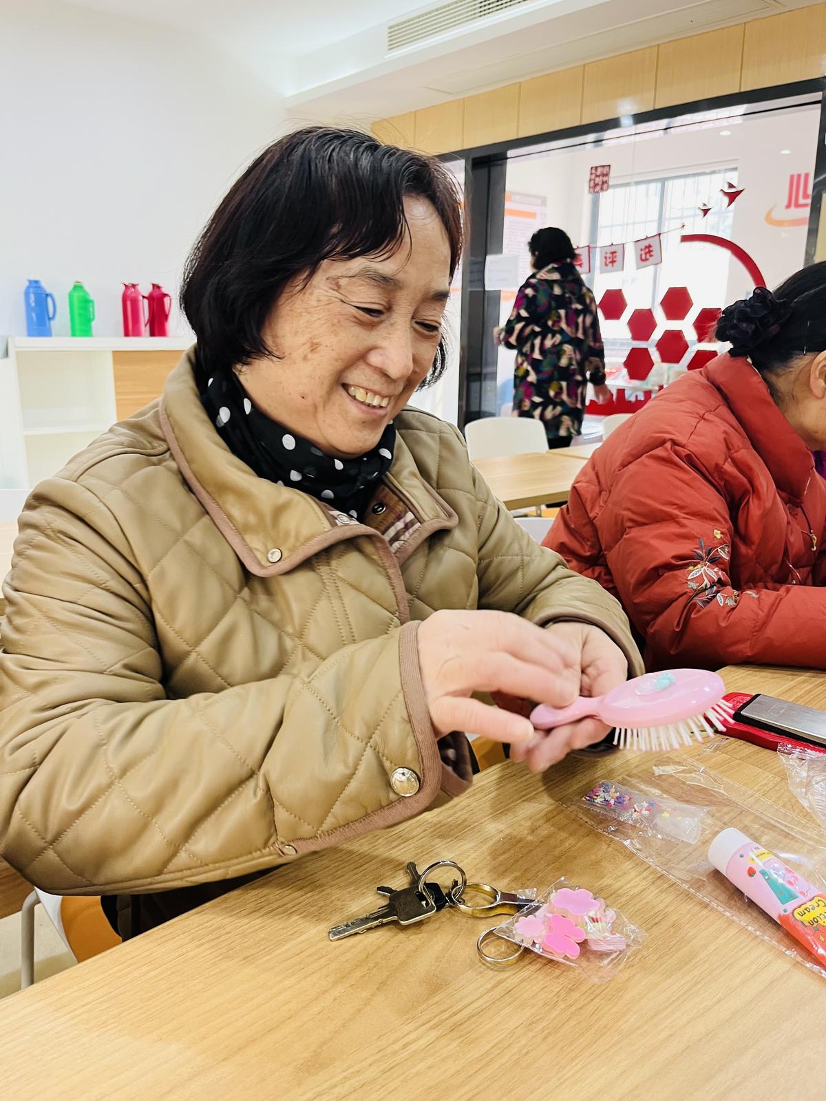 这样的活动不仅让大家在动手创作中收获了快乐,更拉近了邻里间的距离。大家互相分享材料、交流技巧,欢声笑语在室内回荡。当一把把色彩斑斓、造型别致的梳子被展示出来时,每个人的脸上都洋溢着成就感。