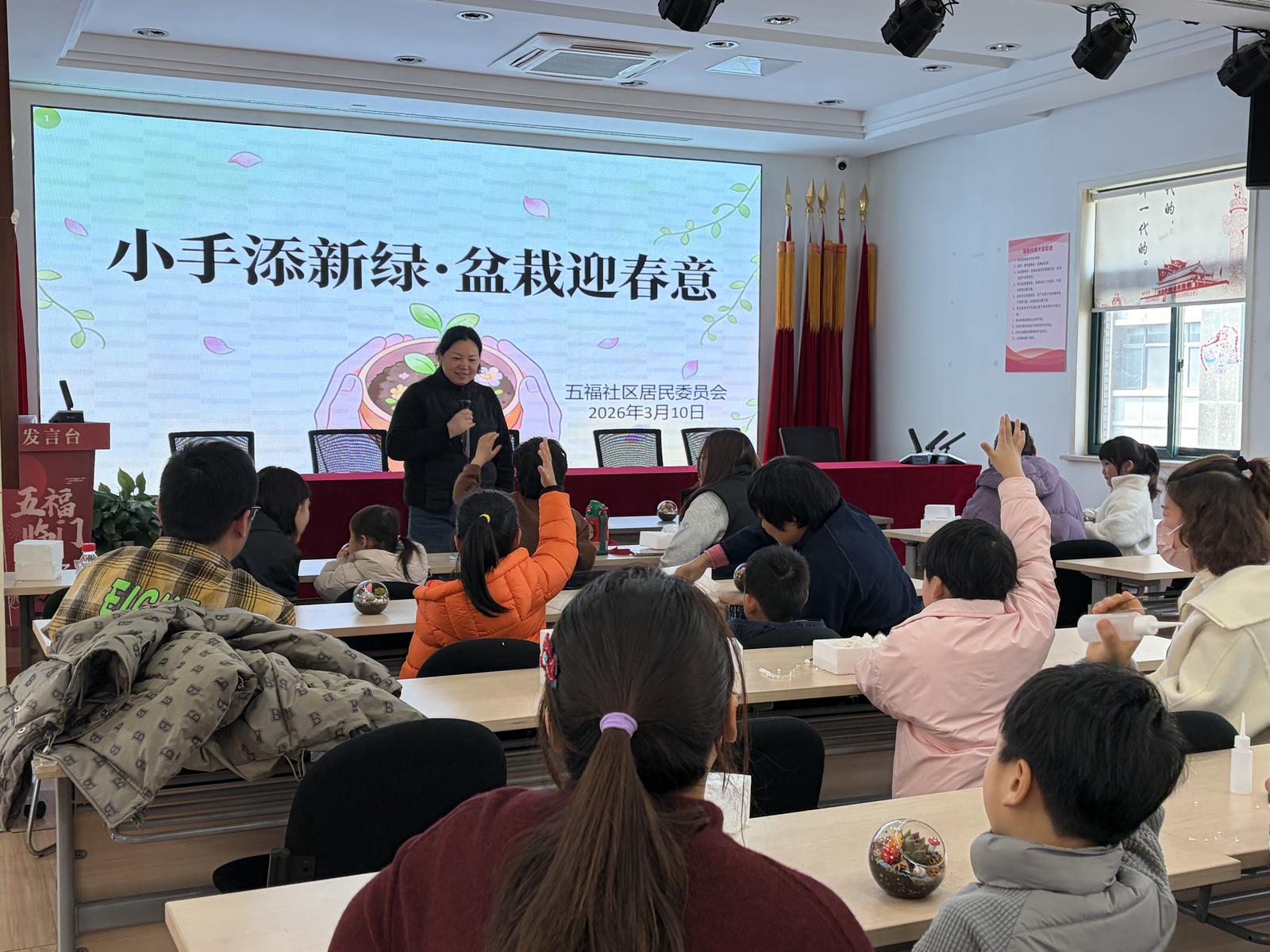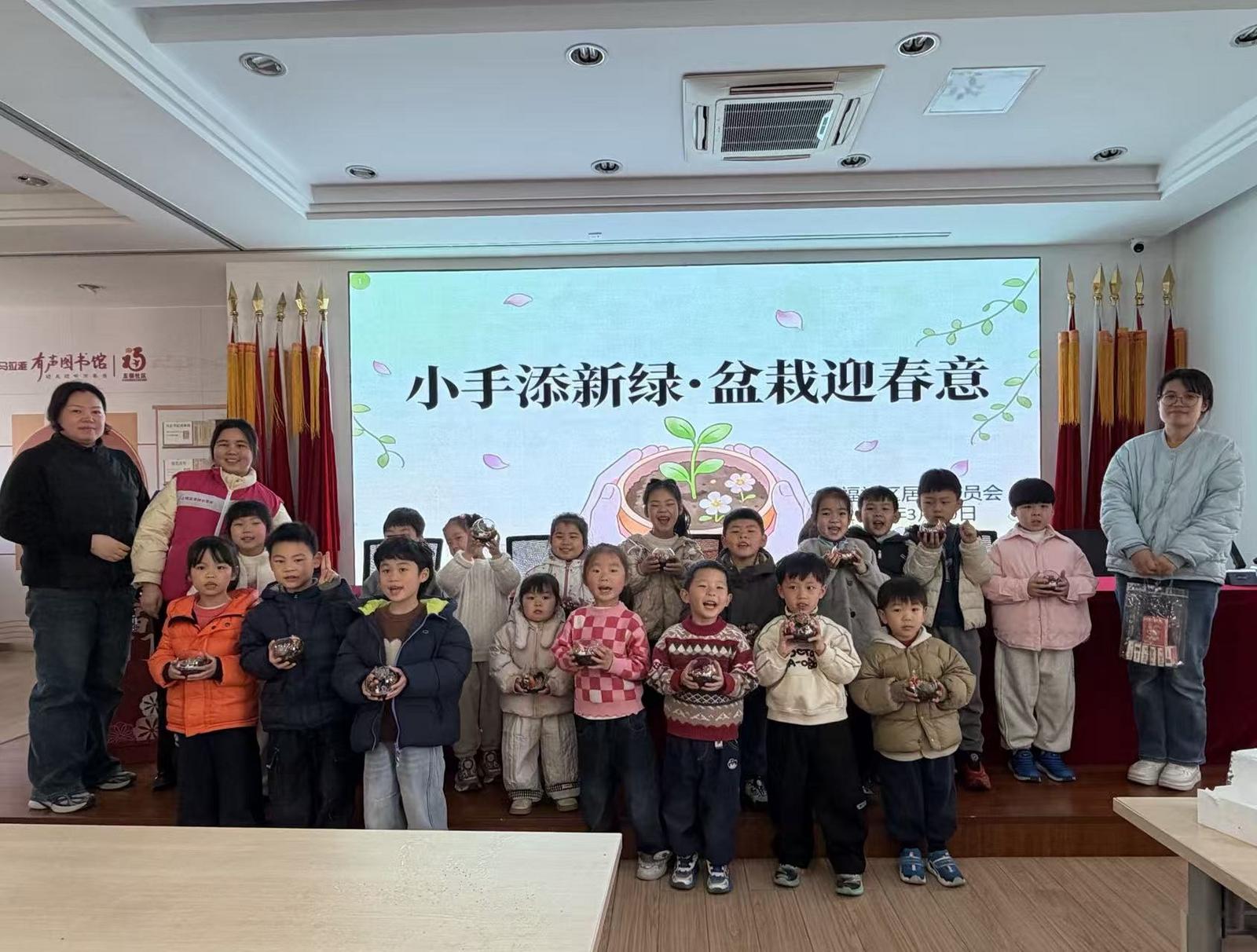 阳春三月,草长莺飞。在植树节来临之际,为弘扬植绿护绿文明新风,增进亲子情感交流,3月10日下午,五福社区联合景和幼儿园共同开展主题为“小手添新绿·盆栽迎春意”亲子盆栽DIY活动,特邀景和幼儿园20组亲子家庭参与,让孩子与家长携手种下春日绿意,共度温馨亲子时光。