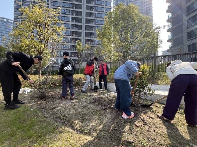 为确保树苗存活与活动有序,四季青街道联动钱塘、城星社区党群服务中心及全域单位,通过政企社资源整合,将专业保障、现场秩序与后期长效管护有机统一。这种资源共享、互补共赢的模式,有效构建起覆盖居民、工地、楼宇的全域服务体系,成为街道将基层治理触角深度延伸的缩影。