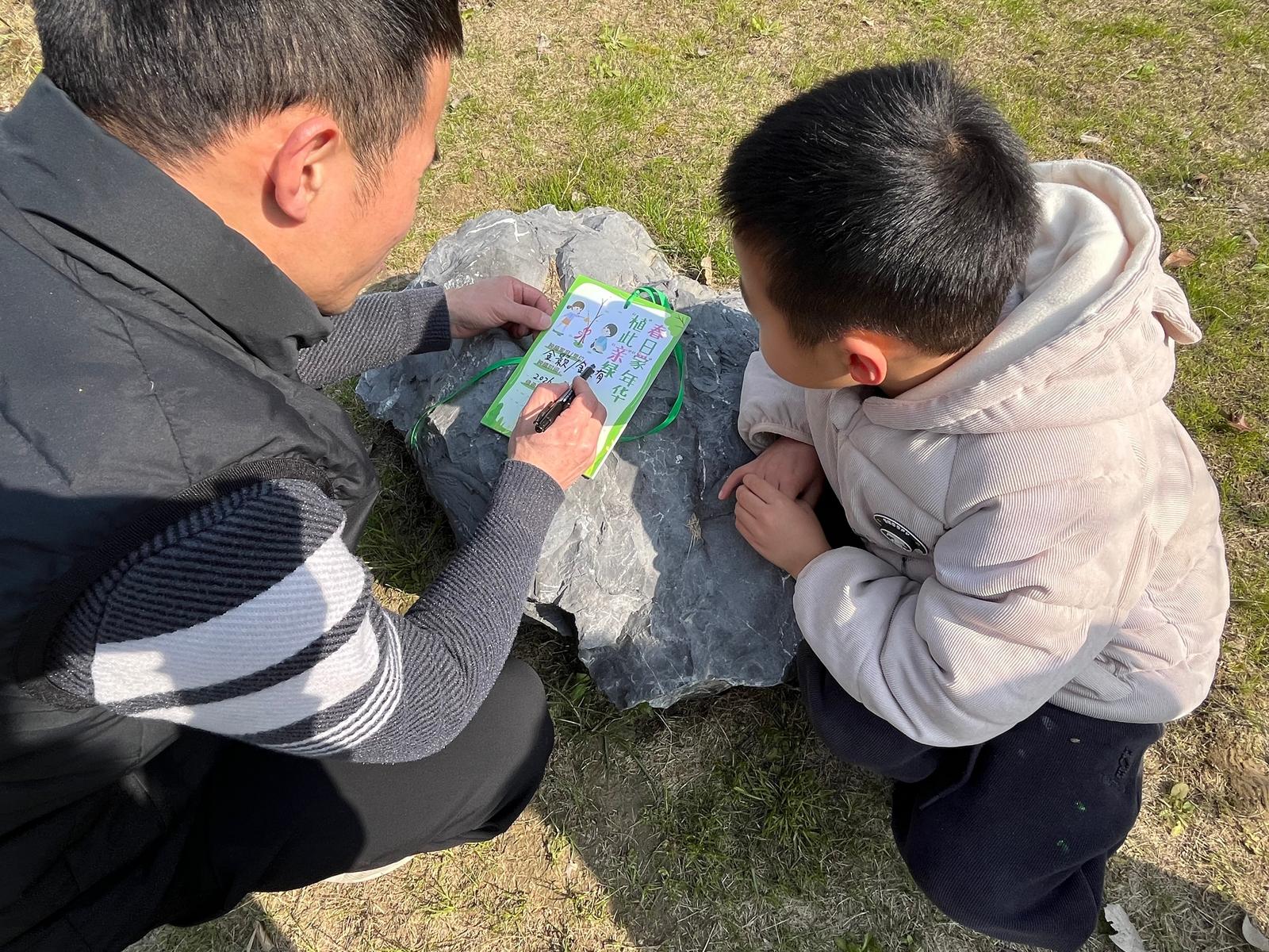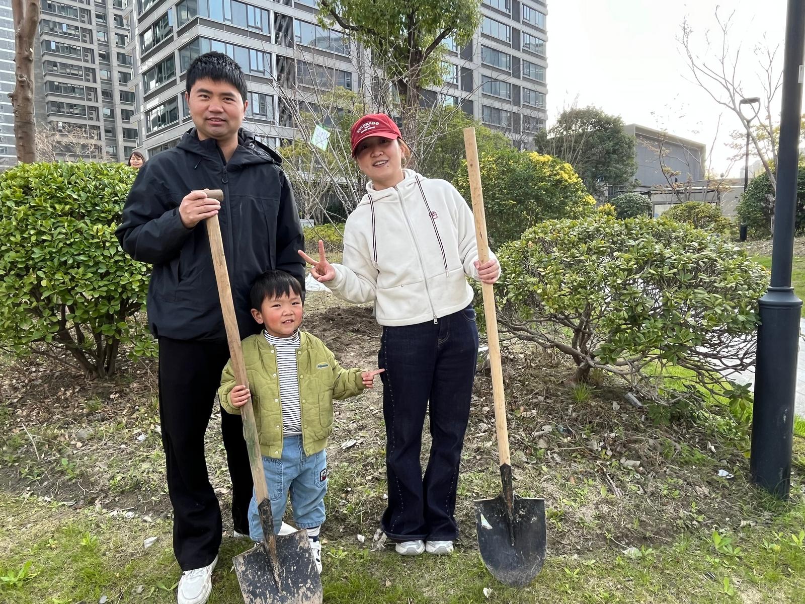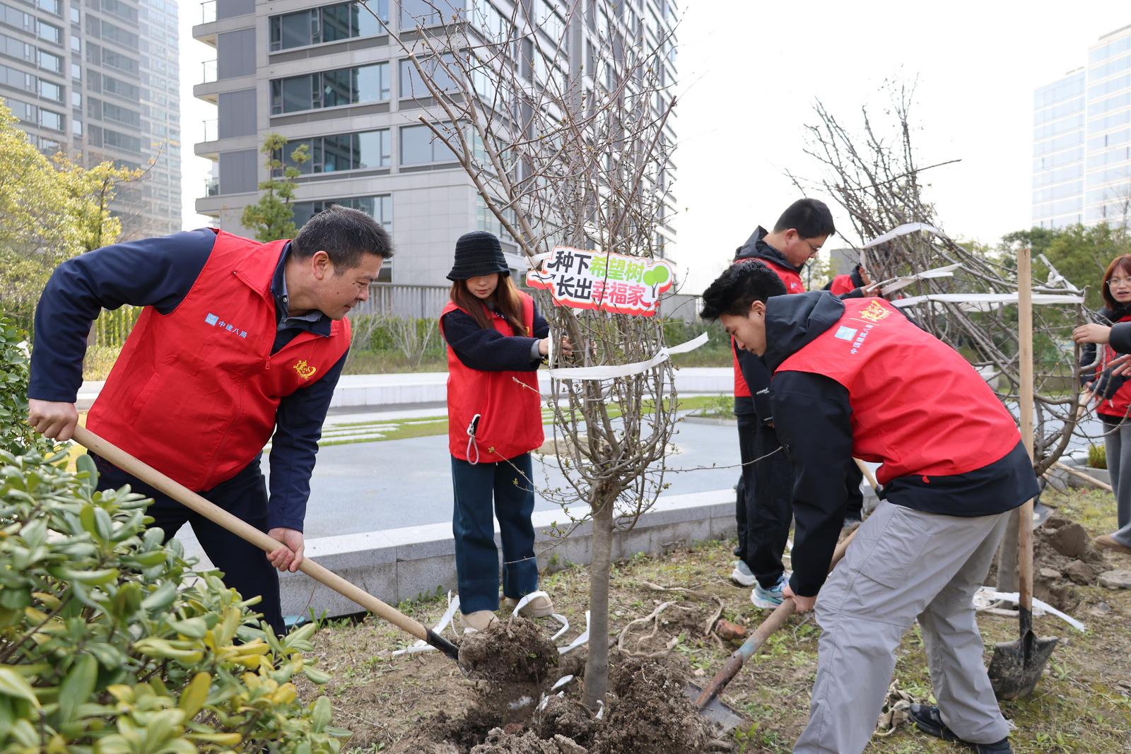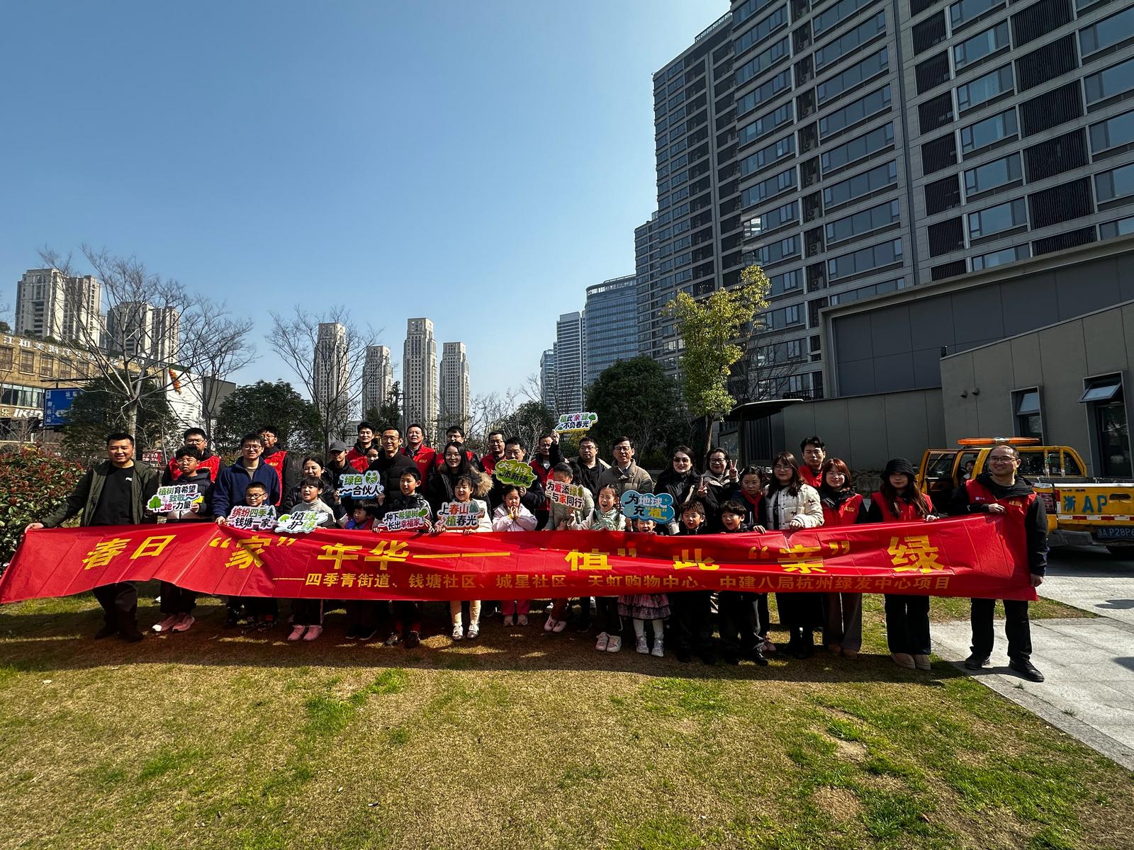 “以前总是在工地上忙碌,今天能带着爱人和孩子一起在钱塘江边种下一棵属于我们家的树,感觉生活更有奔头了!”来自中建八局杭州绿发中心项目的职工王师傅一边擦汗一边笑着说。