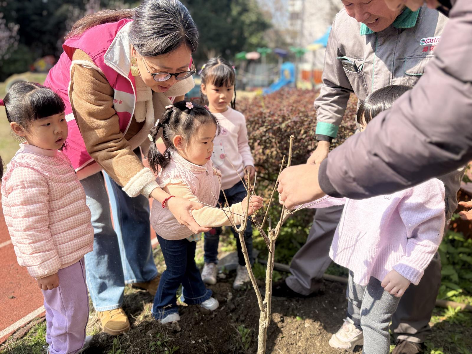 阳光明媚的幼儿园操场上,来自景秀社区的志愿者们和幼儿园的老师们首先为小朋友们讲解了植树节的由来以及树木对环境保护的重要性。孩子们听得聚精会神,眼中充满了对接下来活动的期待。