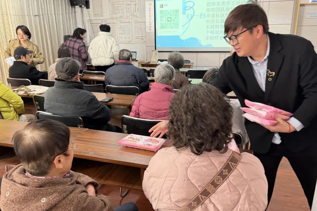 活动现场,社区工作人员与志愿者热情服务,细心为老人们发放汤圆,与大家亲切交谈,详细询问身体状况和生活情况,叮嘱注意春季保暖和居家安全,耐心倾听老人心声,传递社区对老年群体的关心与关爱。