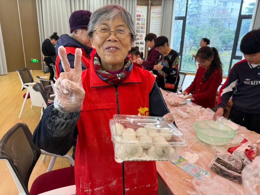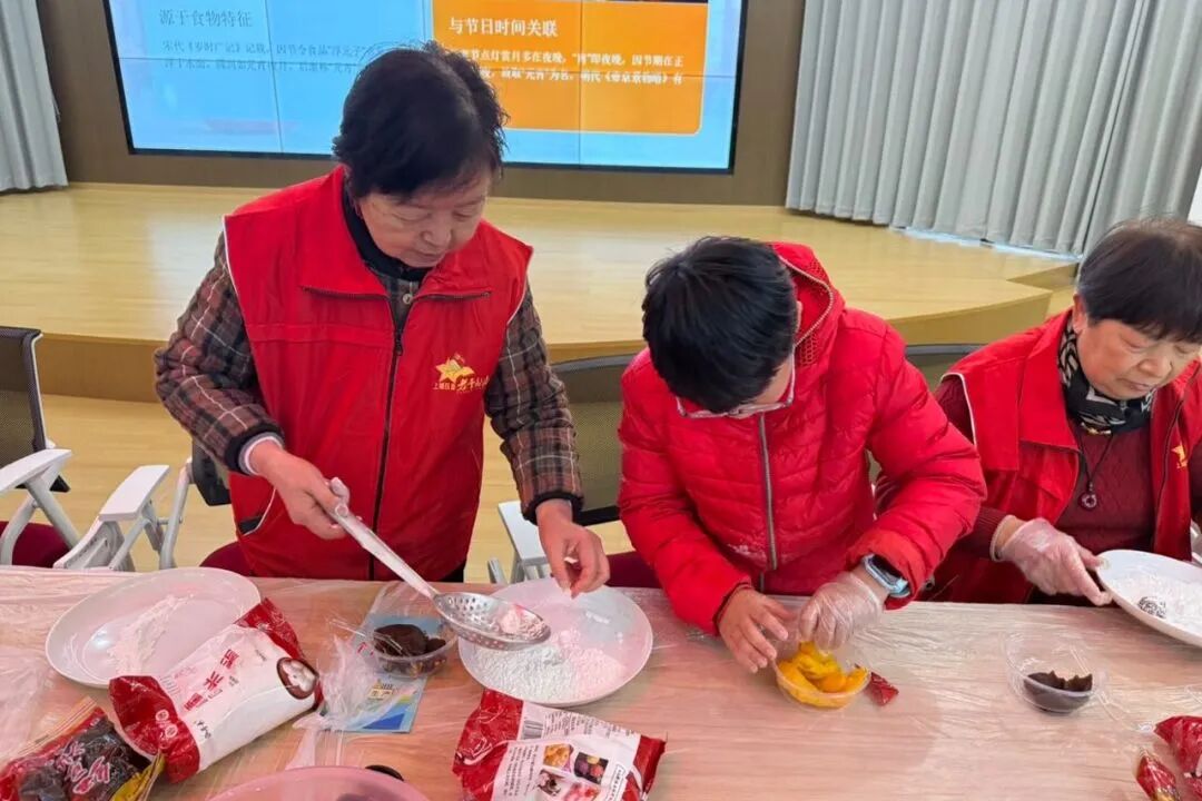 活动现场张灯结彩,谜语内容涵盖传统文化、生活常识、党史知识等,猜到谜底的居民兴奋地摘下纸条去兑奖处领取小礼品,现场笑声不断。一旁的包汤圆区域,静怡社区红十字会小志愿者们围坐一起揉面、拌馅、搓圆,手法娴熟的阿姨边包边教年轻人,一颗颗圆润饱满的汤圆很快摆满了托盘。此外,小志愿者们分组行动,将刚出锅的汤圆和节日祝福送到听力残疾人、快递小哥、抗战老兵等群体家中,让这份甜蜜温暖更多人。
