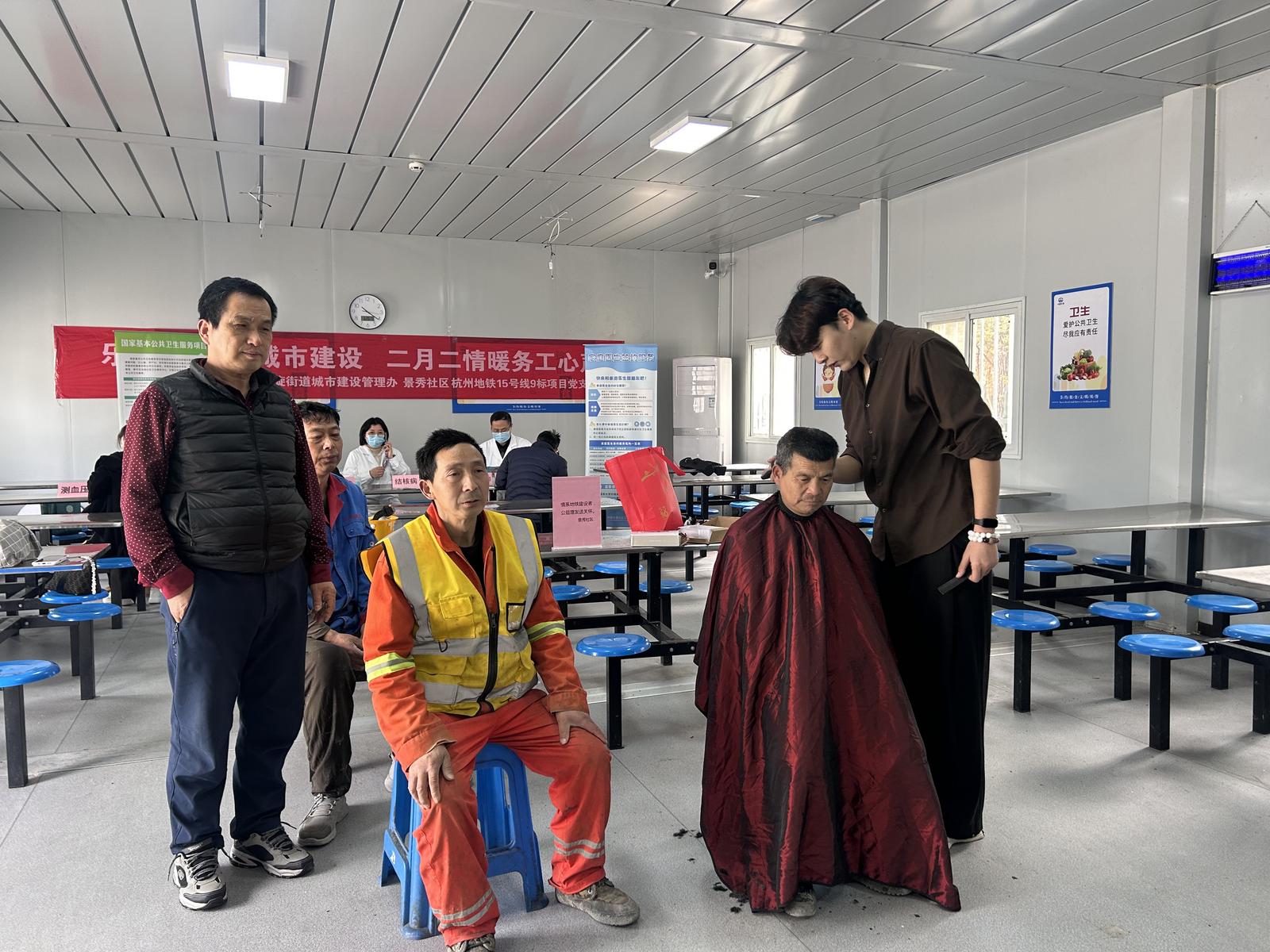 3月20日农历二月初二,民间素有“龙抬头,剃龙头”的习俗。近日,景秀社区新时代文明实践站组织理发志愿者走进杭州地铁15号线9标项目部,为奋战在一线的工人们送去免费理发服务。同时,凯旋街道卫生院的医生们也来到现场开展义诊,共同以暖心行动解决工友们的“头”等大事和健康需求。